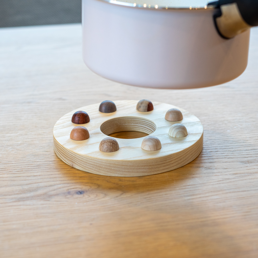 飾りの持ち手がついた可愛らしい花器です。3種類の長さや曲げが違う竹ひごを差すので、楽しい手作り体験ができます。直径5cm、高さ7cmの花筒が付きますので、野の花や花壇のお花など、かわいらしく生けてください。