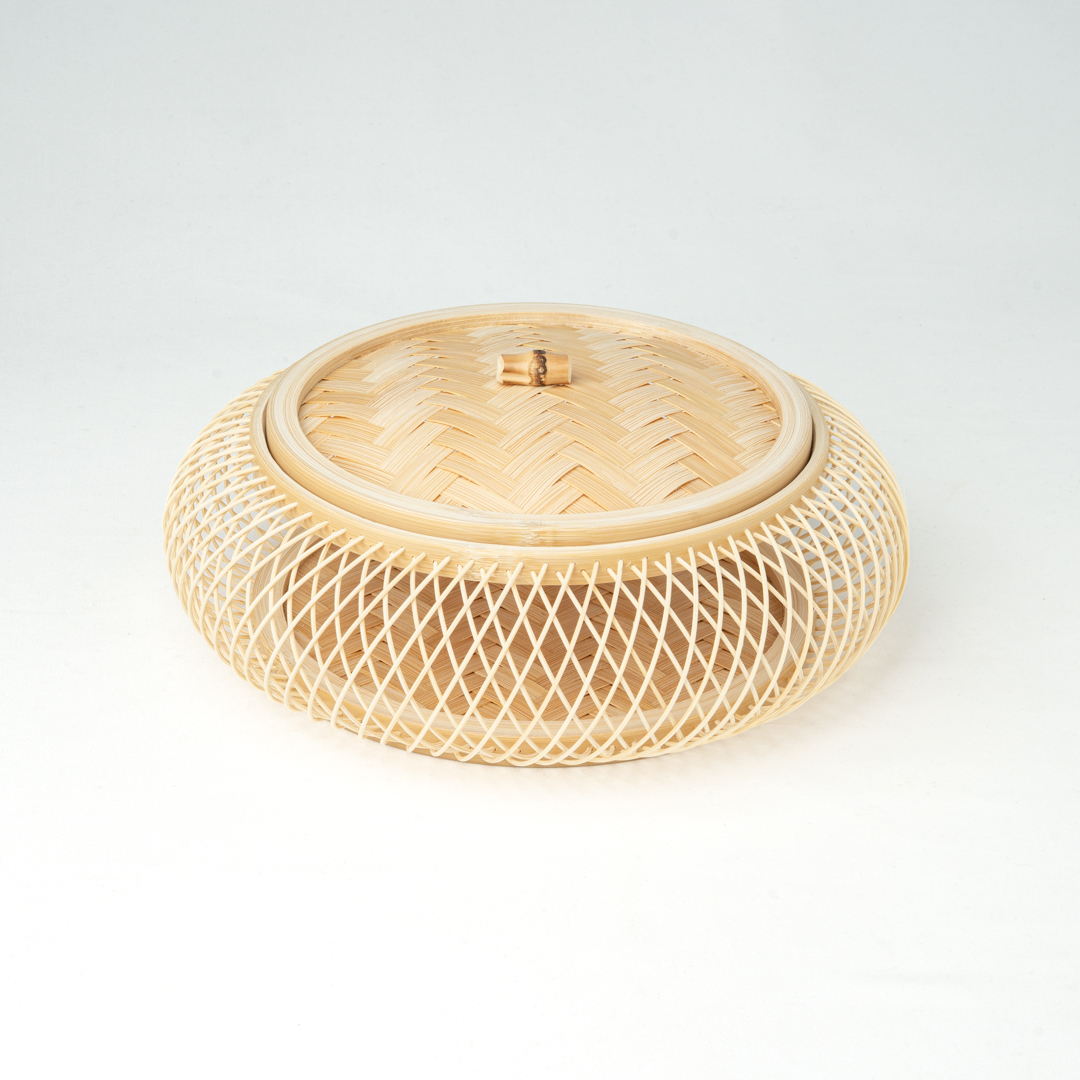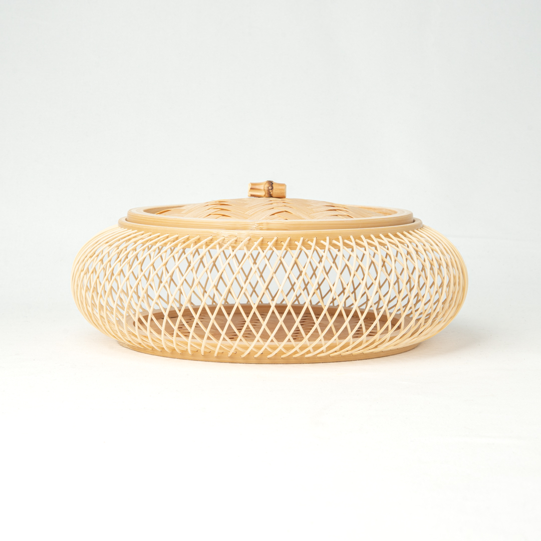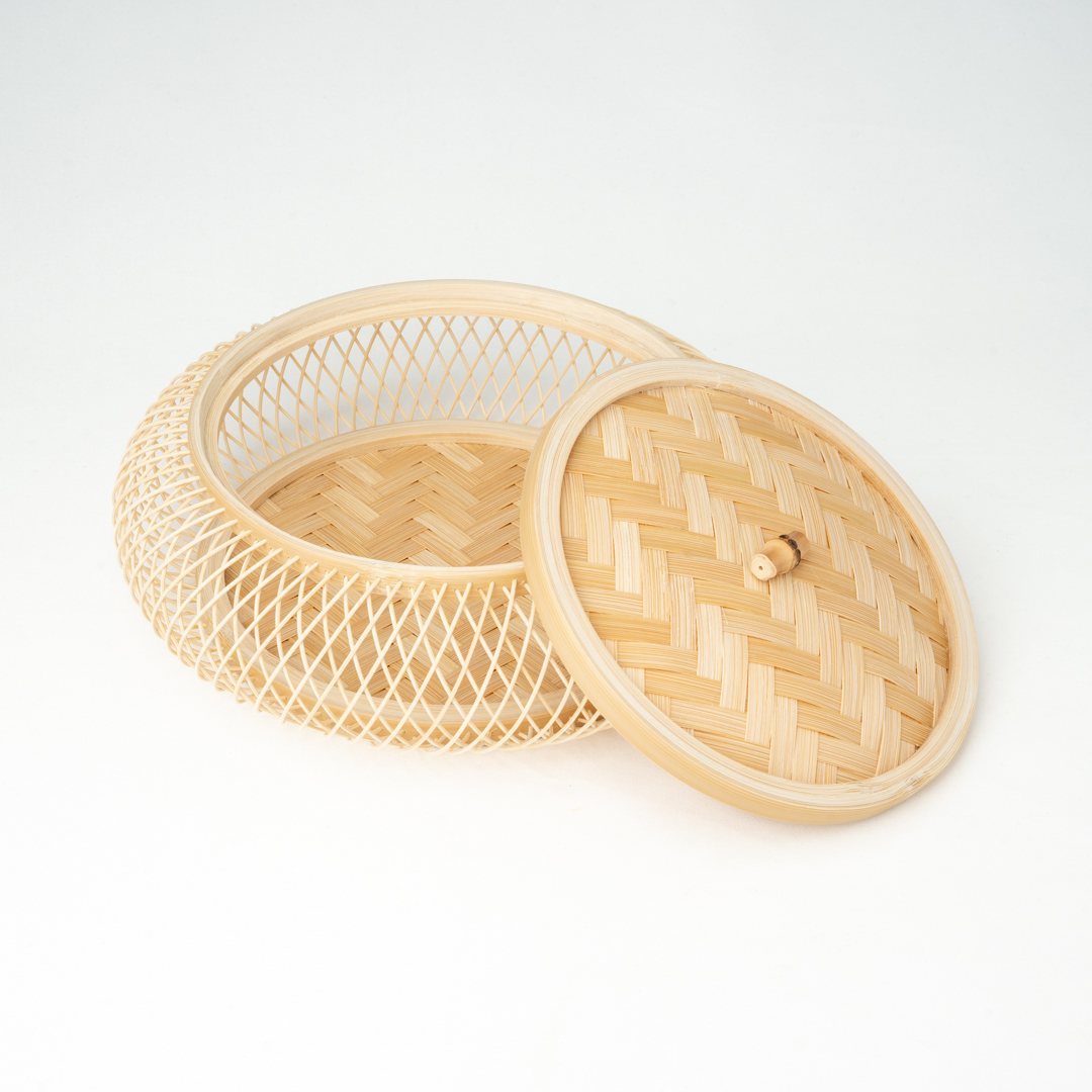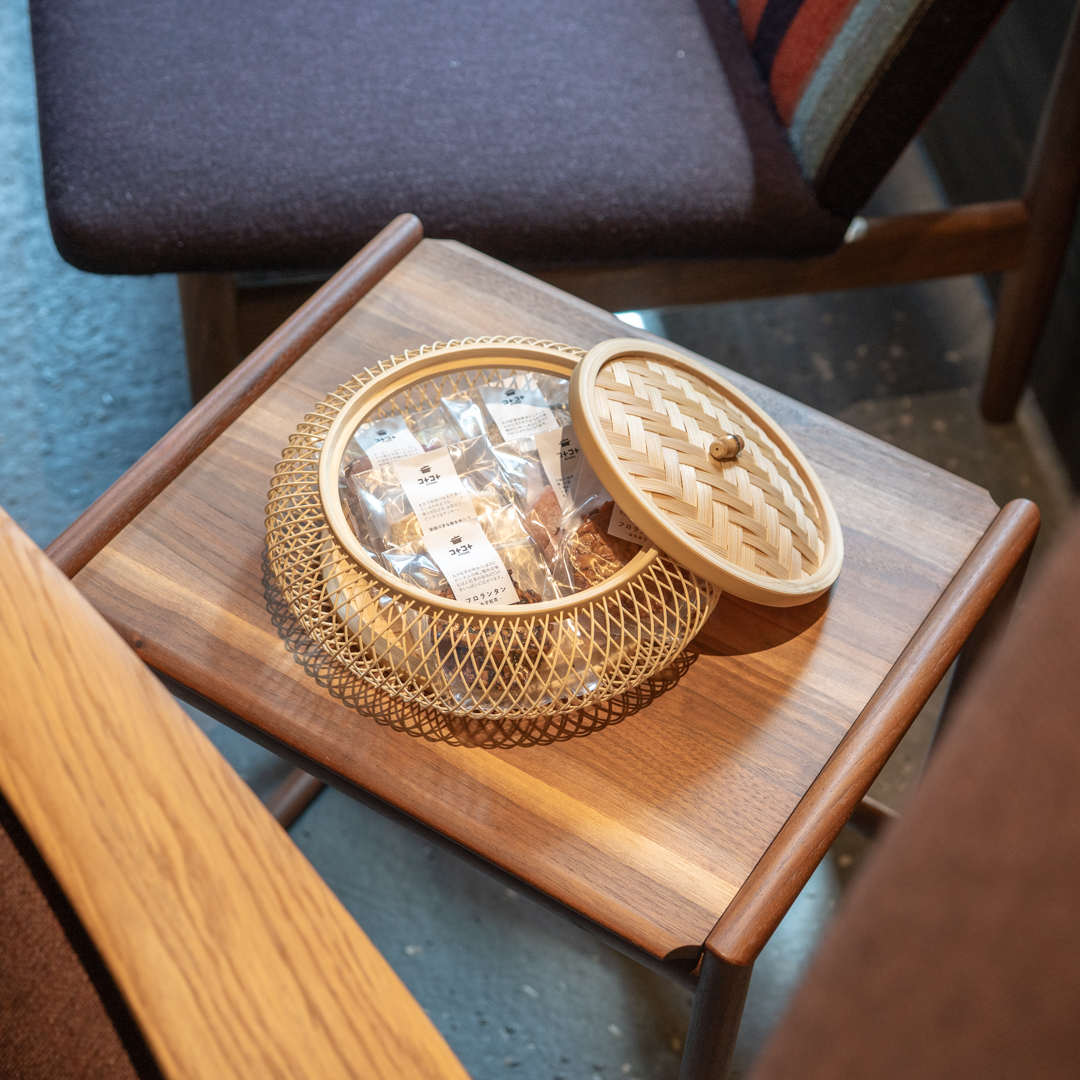 しっかりとしたヒゴの交差と曲線が美しい菓子器が、大切な方々が集まる季節のテーブルを彩ります。