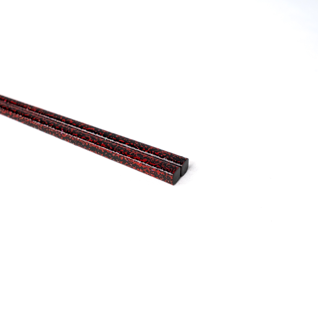 漆を塗ったお箸を研いでいくと、赤い漆とキラキラした貝が出てきて美しい模様に仕上がります。通常の体験では出来ない特別な色の組み合わせをご用意しました。21㎝か23㎝をお選びいただけます。