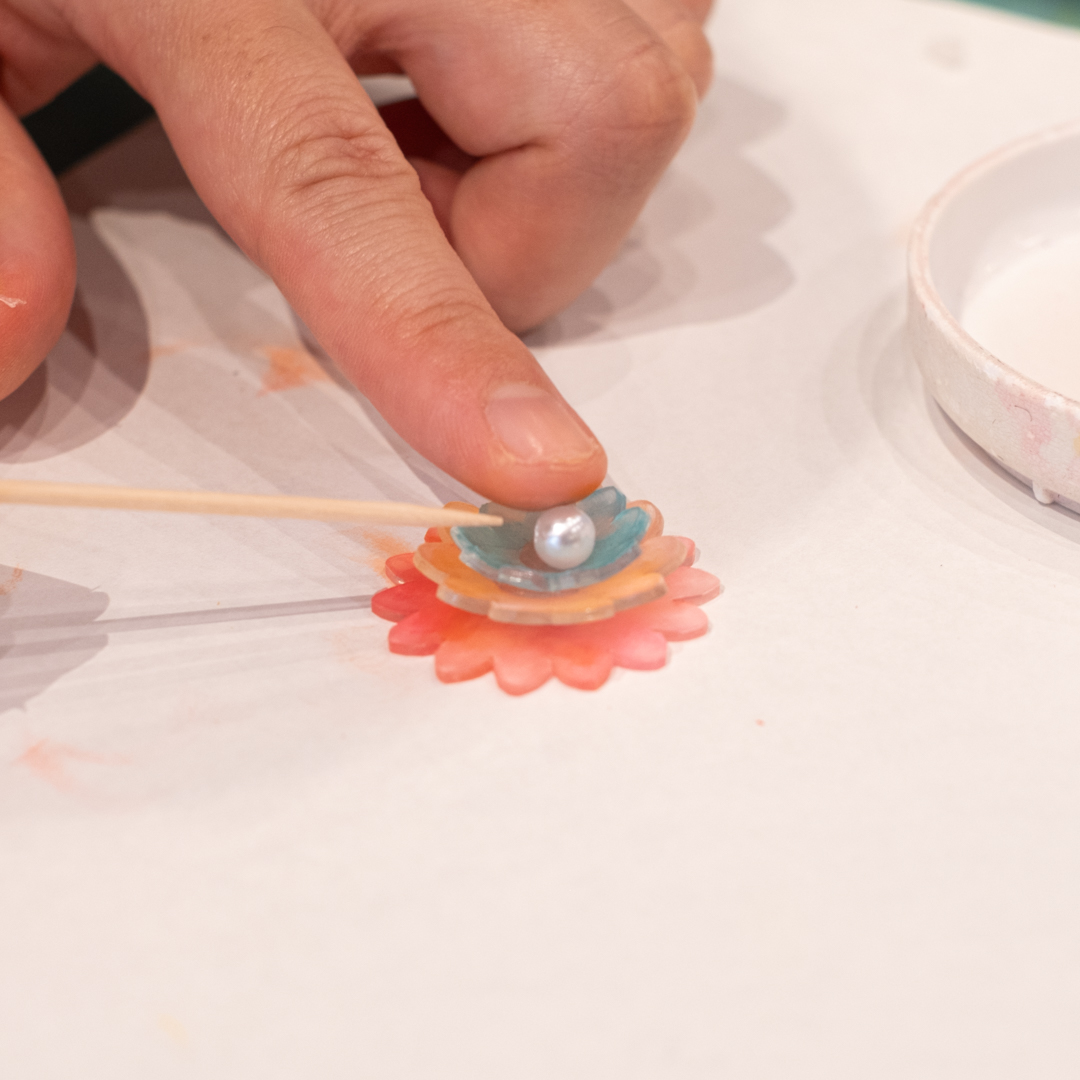 プラバンを立体に加工してお花のアクセサリーをつくります。