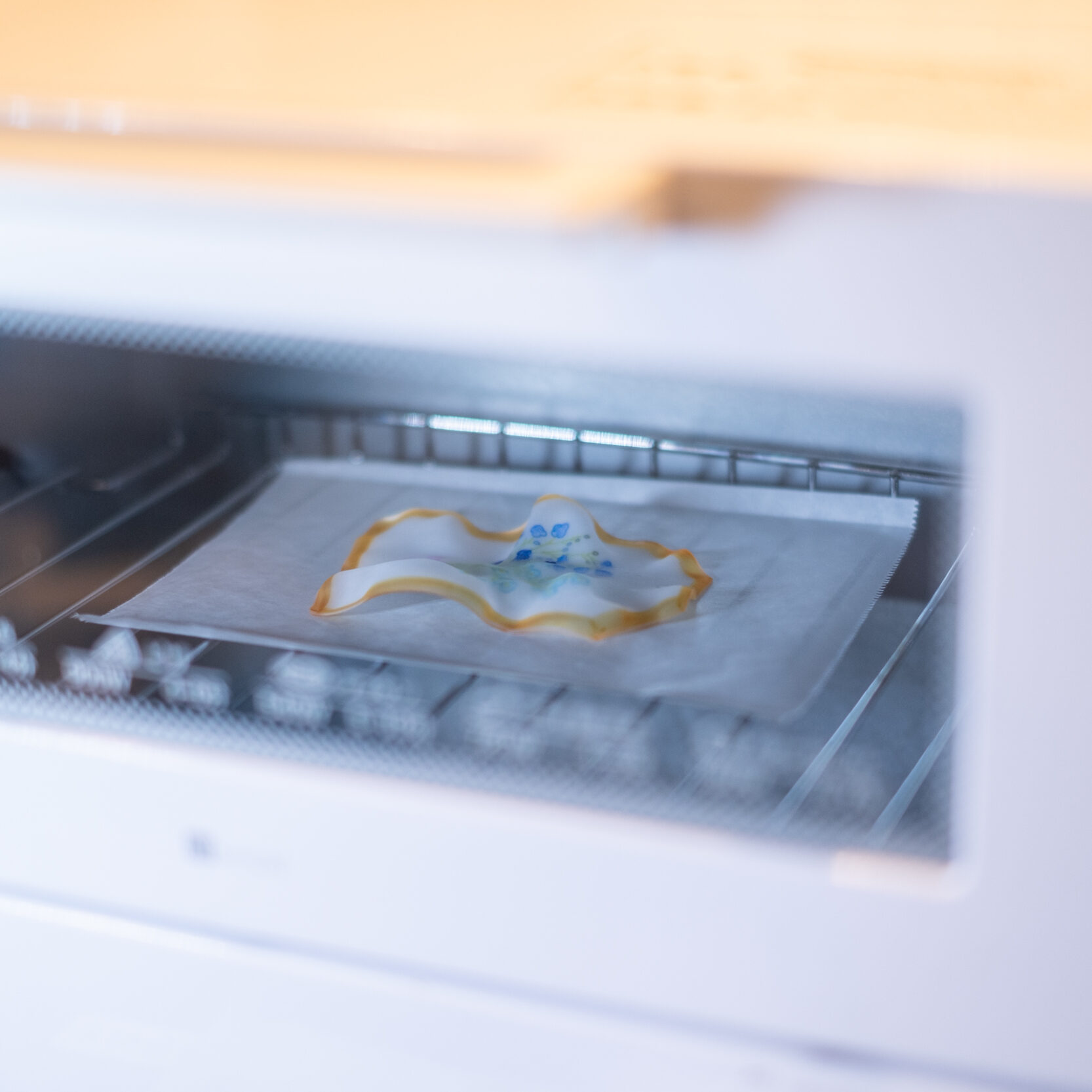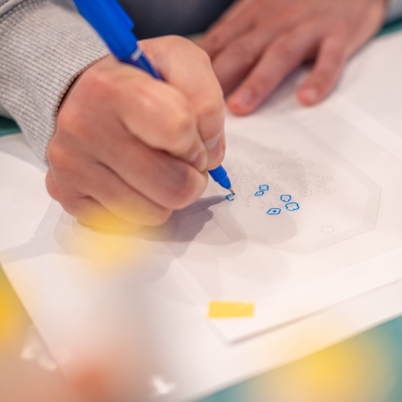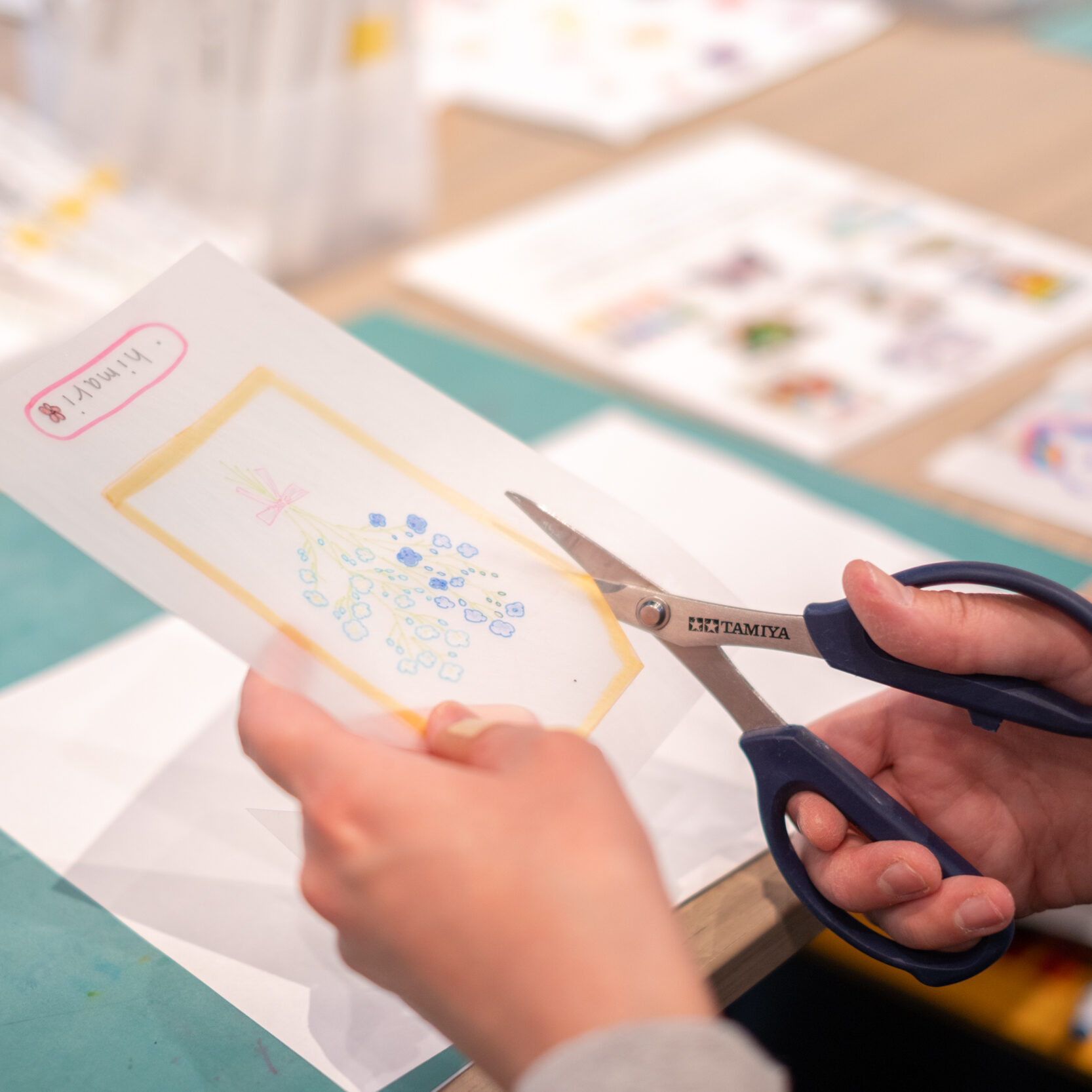 半透明のプラバンに、かすみ草を描いて制作します。