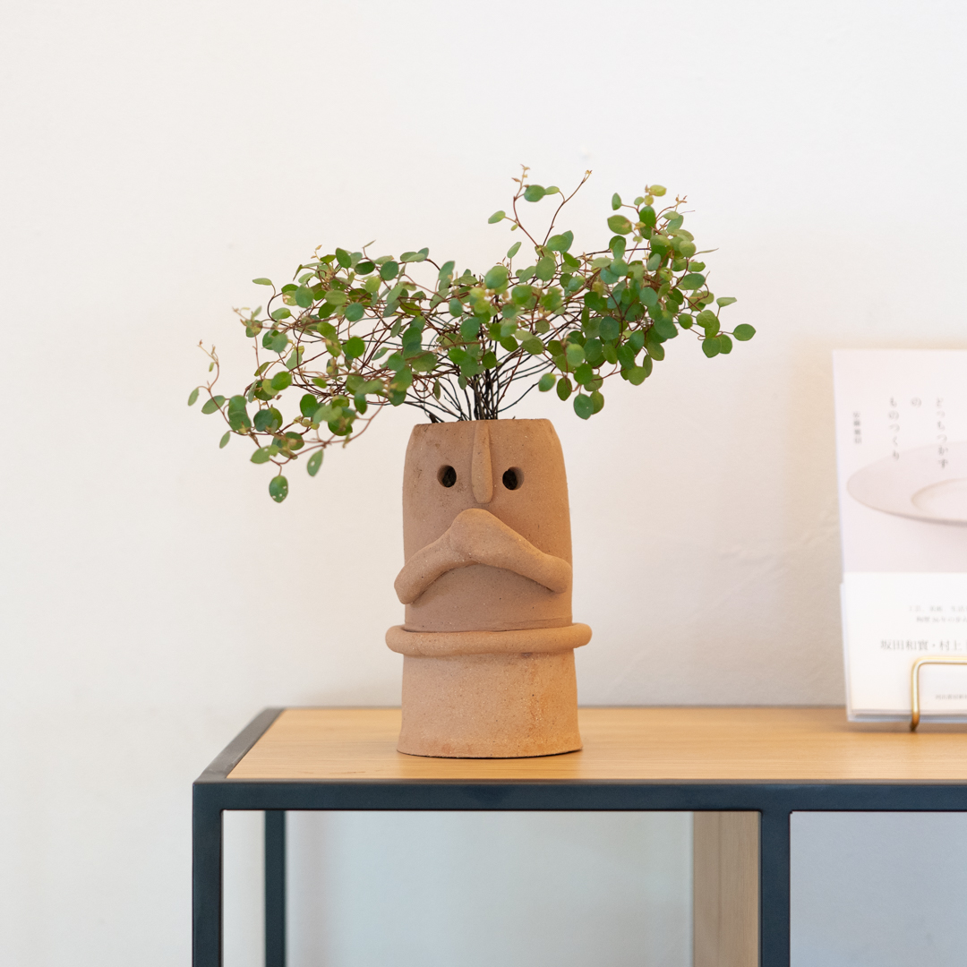 鉢と水受けが一体となったはにわ型の植木鉢。自分だけのはにわをつくっておうちに飾ってみませんか?