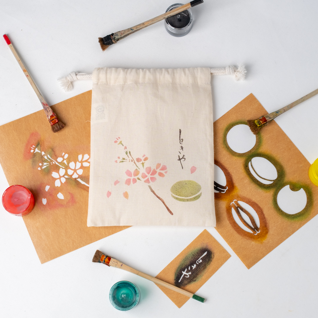 手のひらサイズのミニミニトート。バッグinバッグとしてご使用いただけます。型紙を選んでいただいたら、お好きな色を刷毛で刷り込むように染めていきます。手の加減によってグラデーションが表現できるのが魅力です。