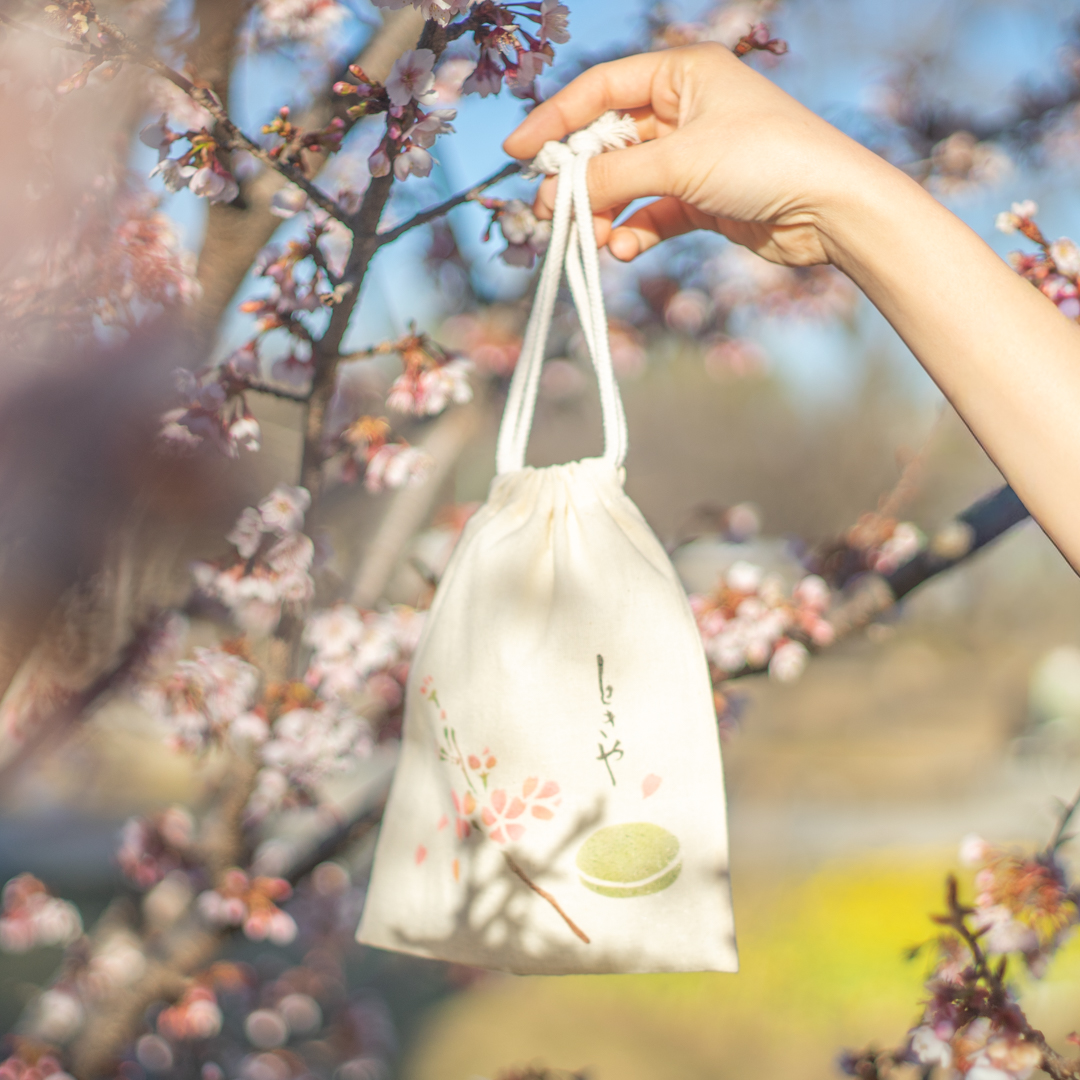 ステンシル巾着体験時に匠宿にある和菓子のお店「蓬きんつば ときや」をご利用いただいたレシートをご提示いただくと、ときやとコラボした特別な型紙を使用して巾着のステンシル体験ができます。
