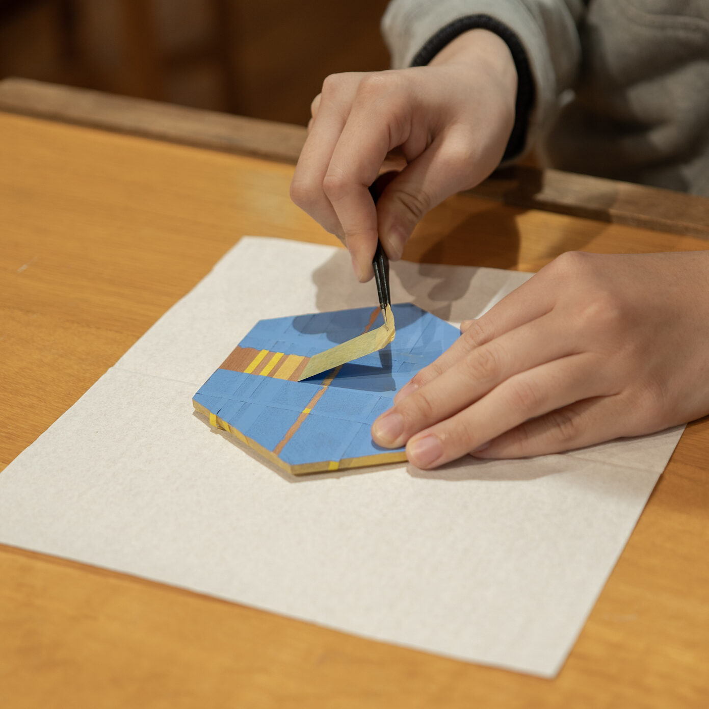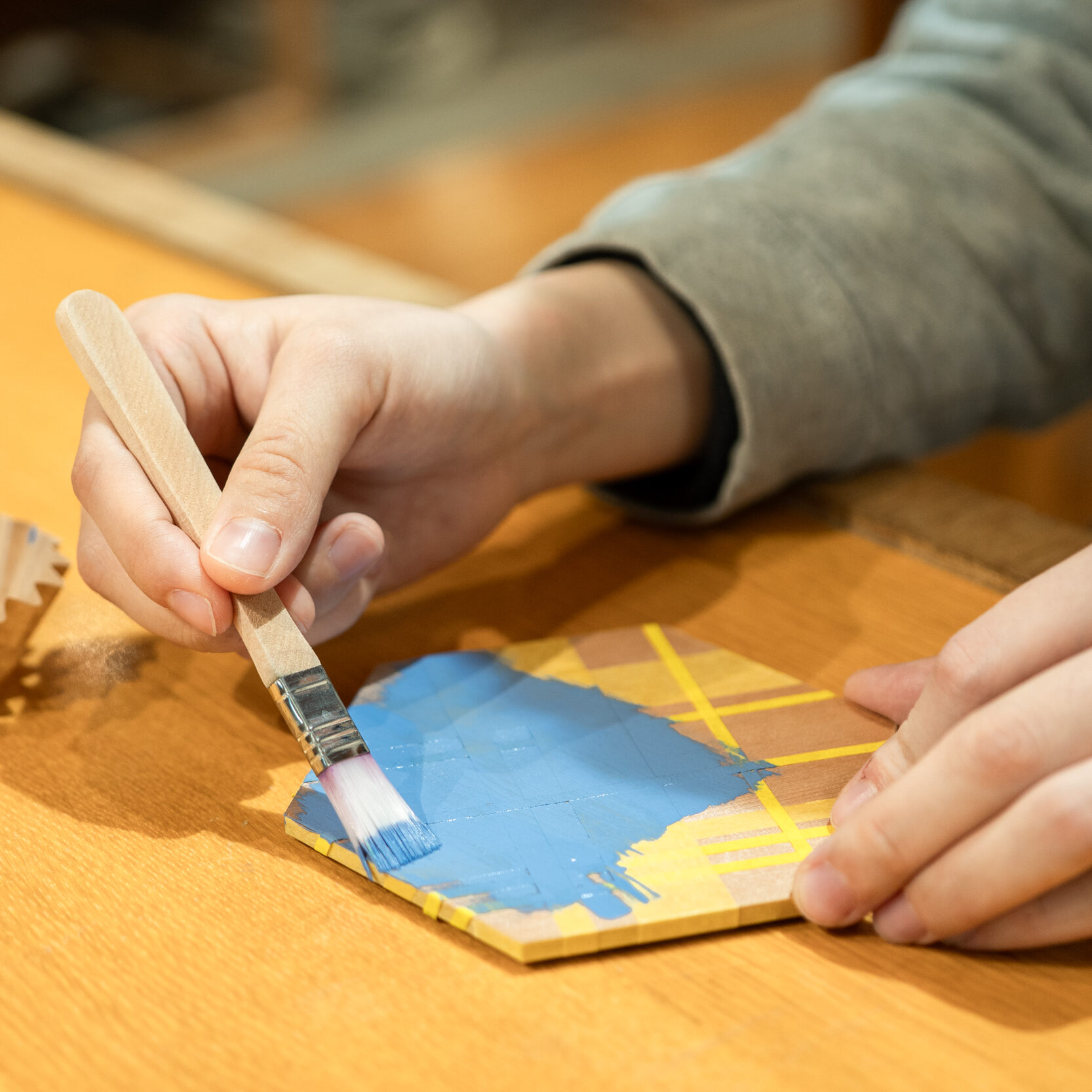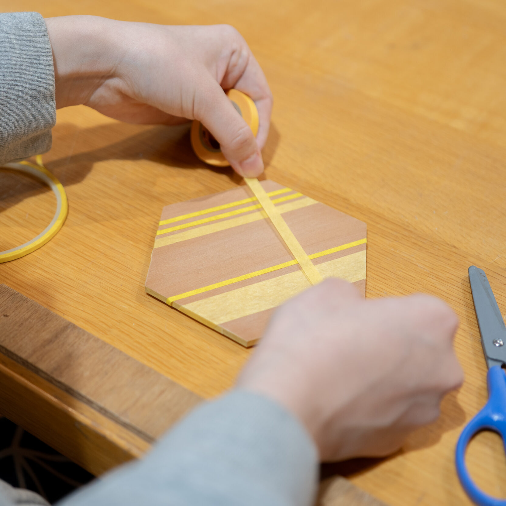 指物職人の技が光る小箱です。パーツの溝にボンドをつけて組み上げるので簡単につくることができます。更に蓋に色塗りができます。マスキングテープでお好きなようにデザインし、筆でお好きな色を塗った後に剥がすとオリジナル模様の出来上がり。文具やキャンディーを入れたり、アクセサリーを入れたりいろいろな使い方ができますね。