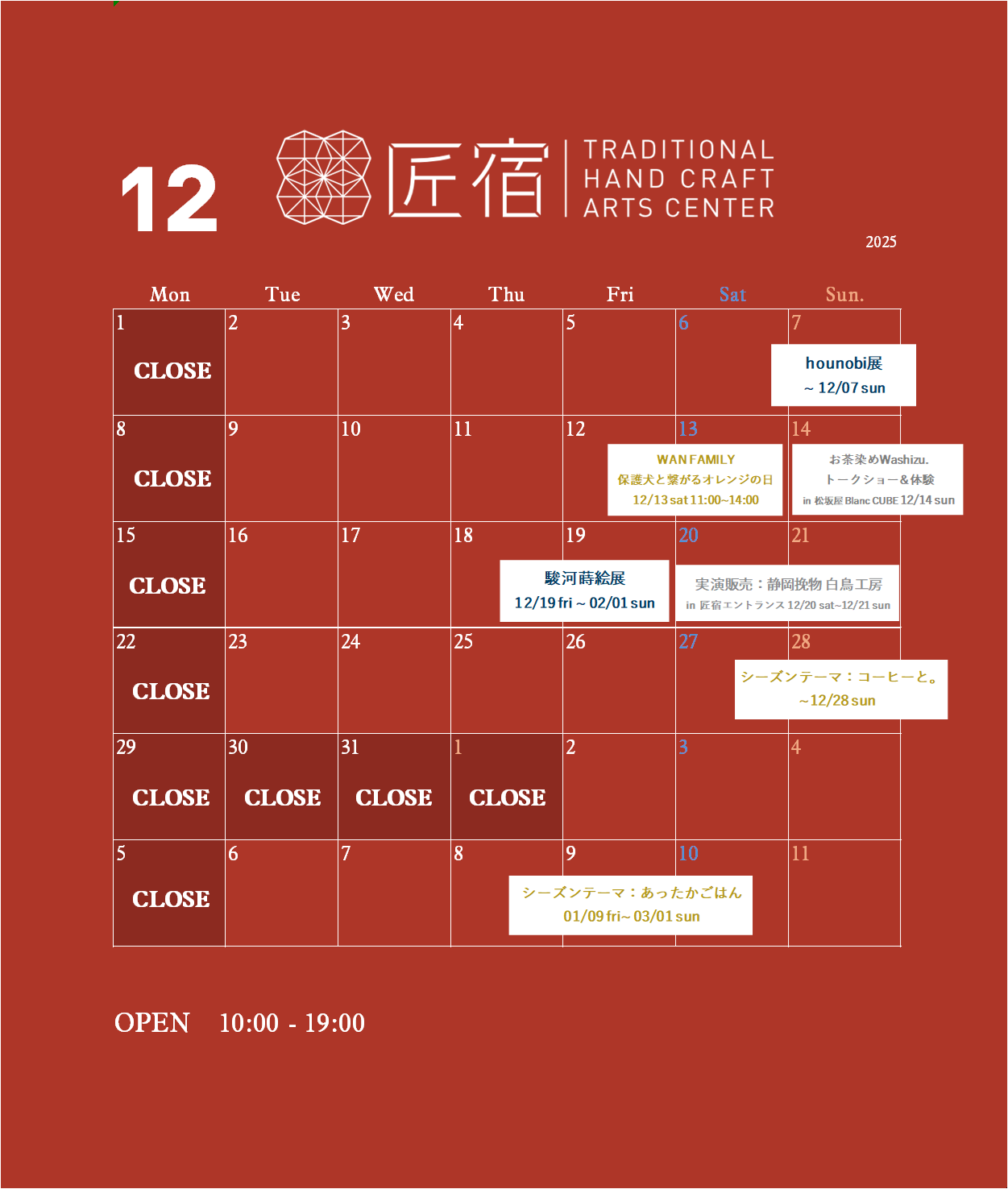 12月の営業スケジュールのご案内です。 冬の気配が深まり、澄んだ空気に一年の締めくくりを感じる季節となりました。心あたたまる時間をお楽しみください。 12月および年末年始は...