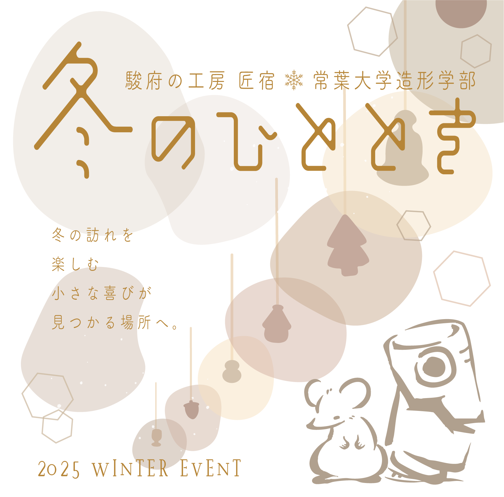 冬のひととき 心も手先もあたたまる、冬のときめきを。 静けさが深まる冬。 駿府の工房 匠宿では、常葉大学との共同企画として 12月1日(日)~1月31日(土)に「冬のひとと...