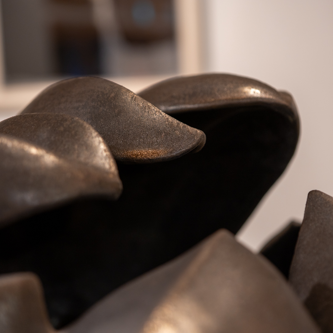 この作品は仏像をモチーフに制作しています。四天王のひとり多聞天の憤怒相からインスピレーションを受け、戦いの神としての沸々湧き上がる力強さや、信仰の対象である仏像としての美しさを表現しています。派手さはないけど迫力がある、なんか目を引くそんな作品になれたなら幸いです。