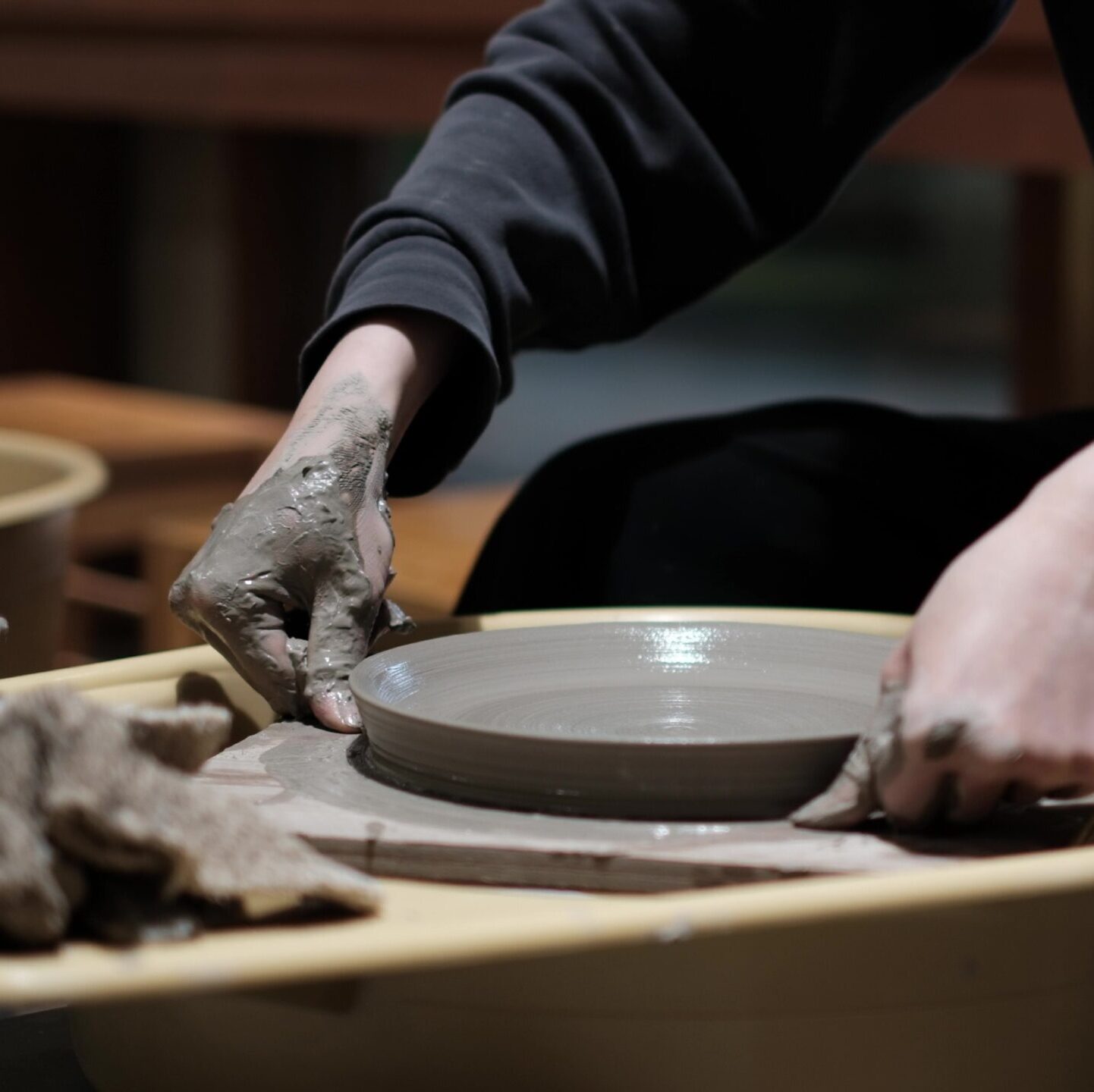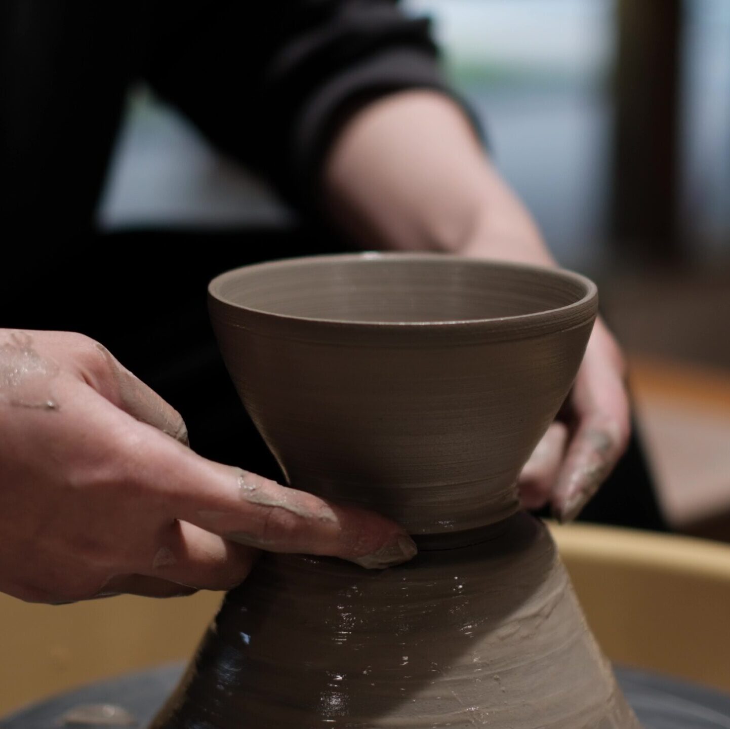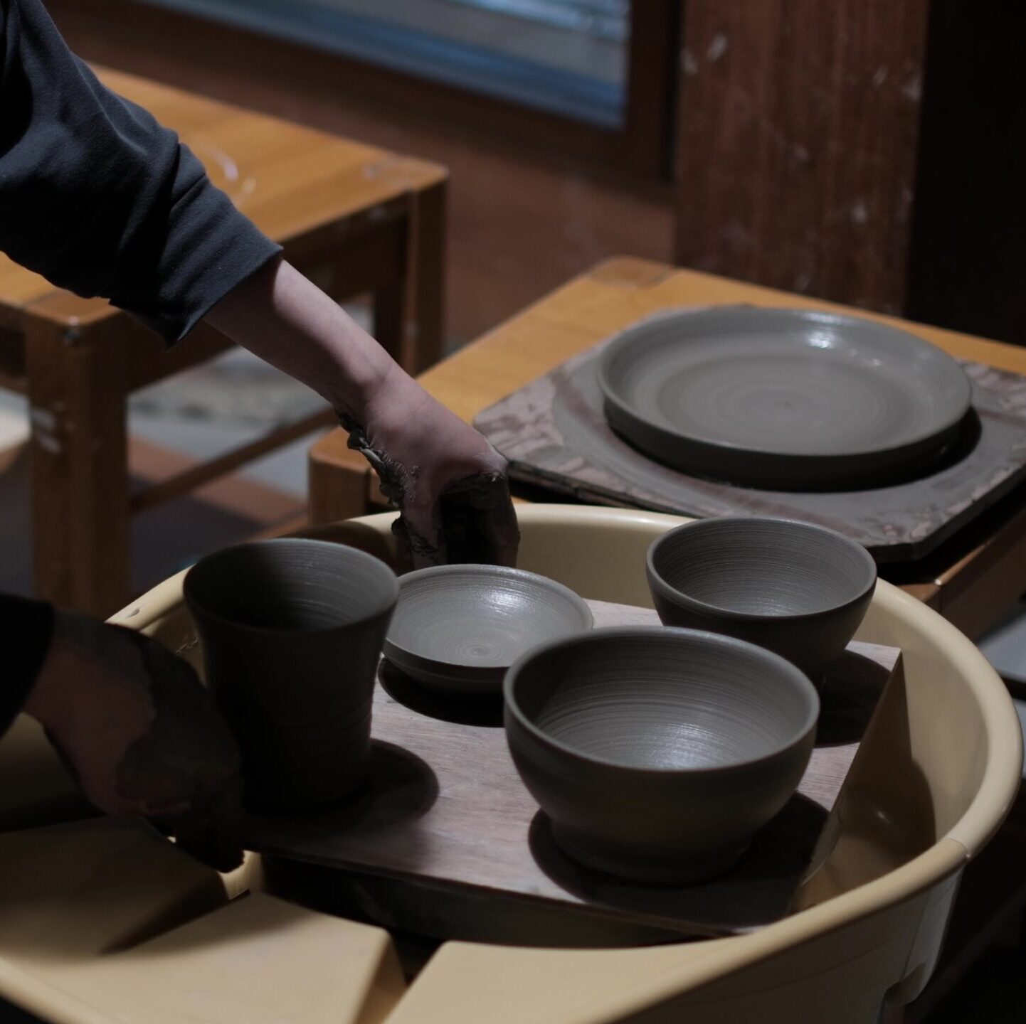 「バイ挽き」という技を使い、大きいものから数あるものまで、土とじっくり向き合いながら自由に制作いただけます。