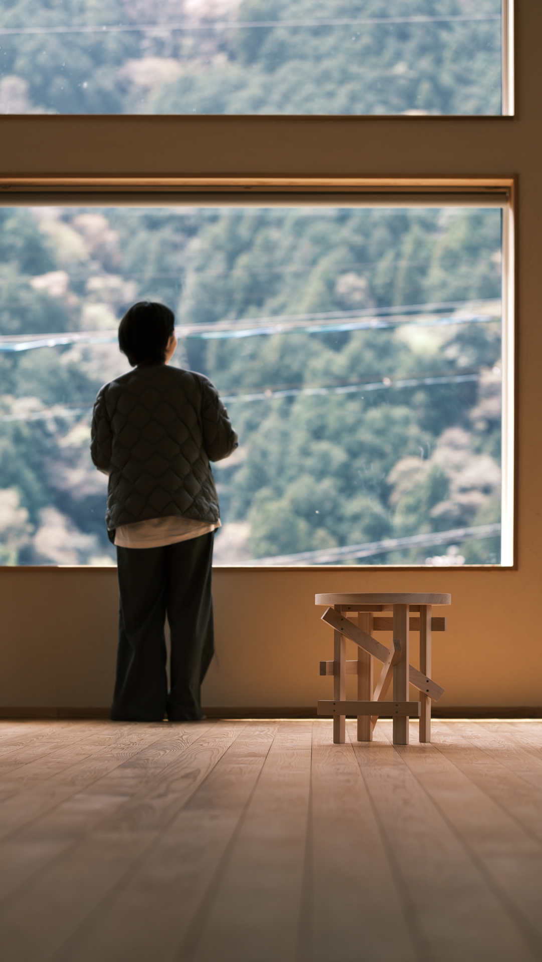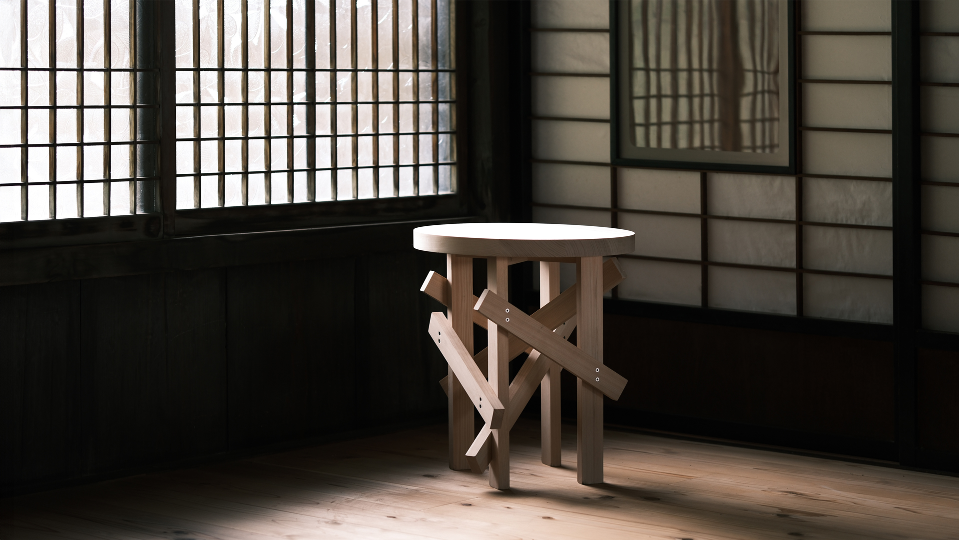世界的な建築家、隈研吾氏が監修した駿府の工房 匠宿だけの特別な木工体験「タテヨコナナメ」は、最低限の構造で少し不安定なスツール本体と、三本の木材パーツをお渡しするところから体験がスタートします。