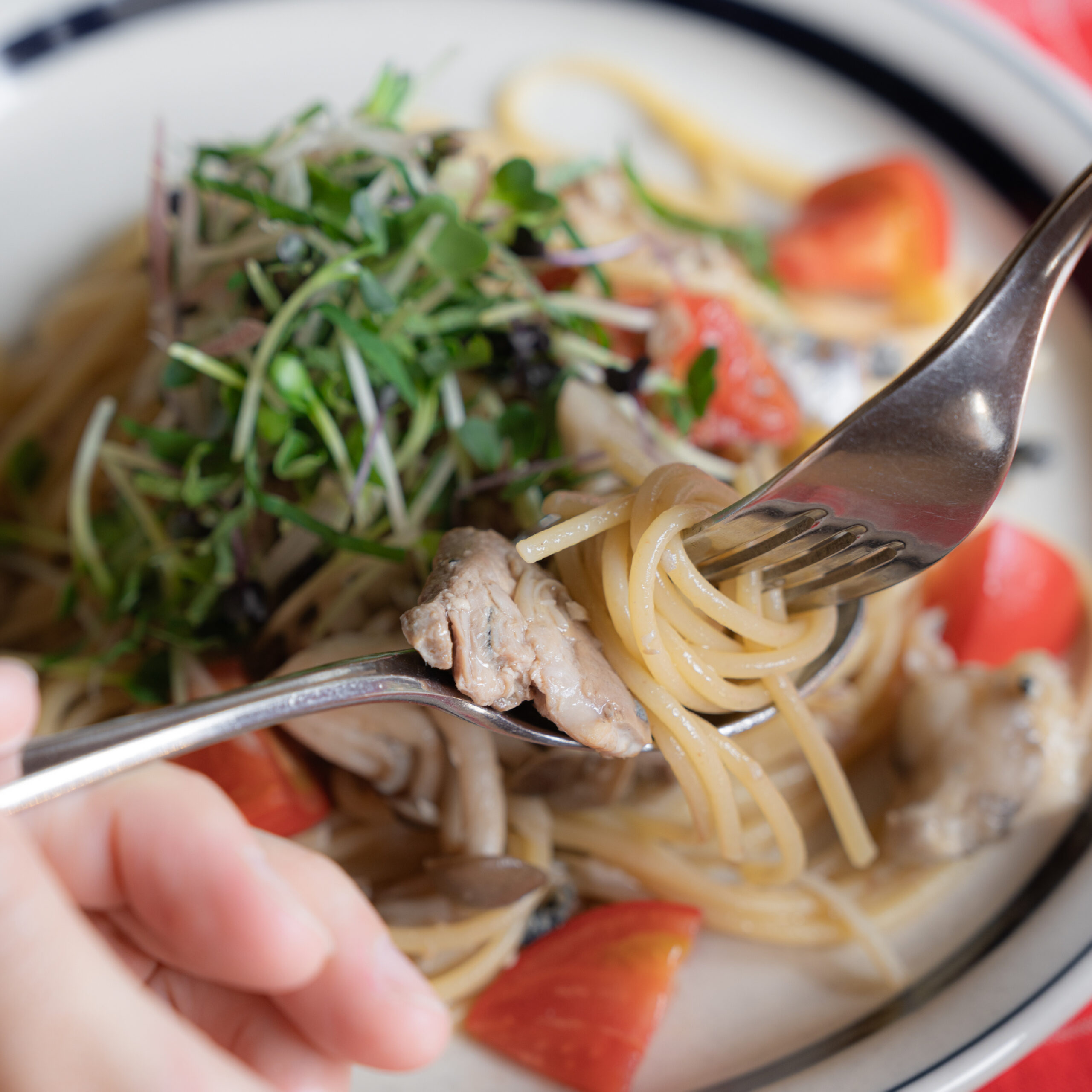 秋刀魚やきのこなど、秋の味覚をぎゅっと詰め込んだ和風パスタ。