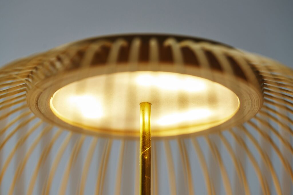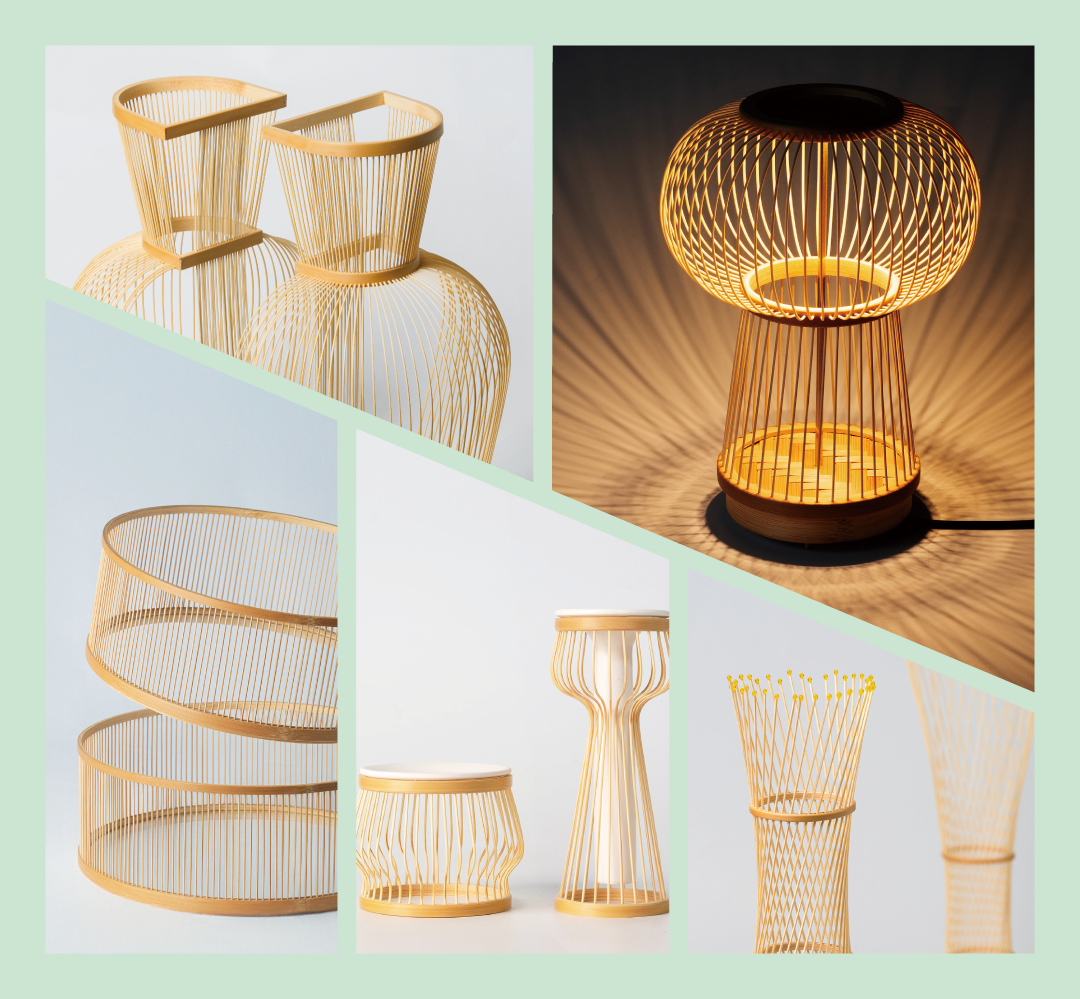 今回の開発では、駿河竹千筋細工がこれまで手がけてきた花器や虫かごといった「入れもの」から、「光の入れもの」であるテーブルランプへの変容を試みました。