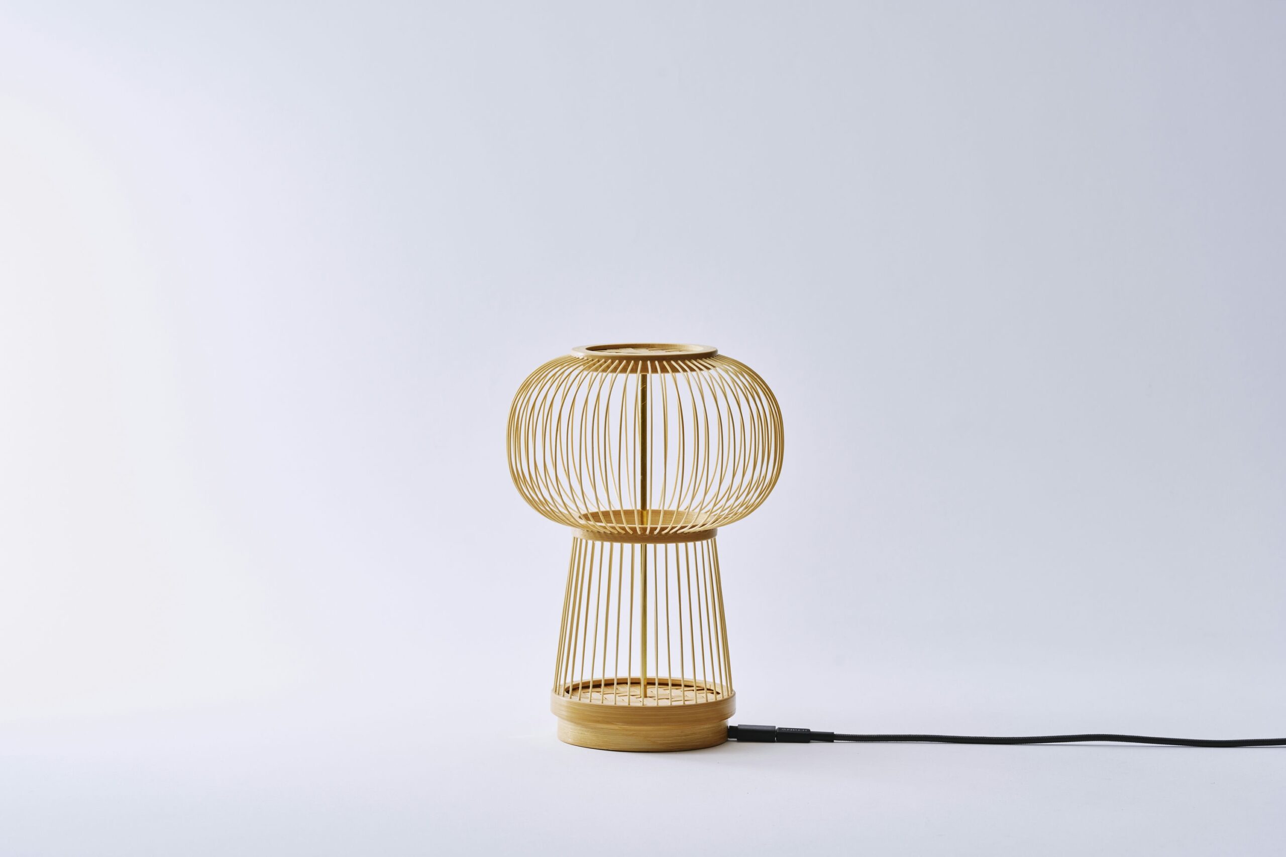 今回の開発では、駿河竹千筋細工がこれまで手がけてきた花器や虫かごといった「入れもの」から、「光の入れもの」であるテーブルランプへの変容を試みました。