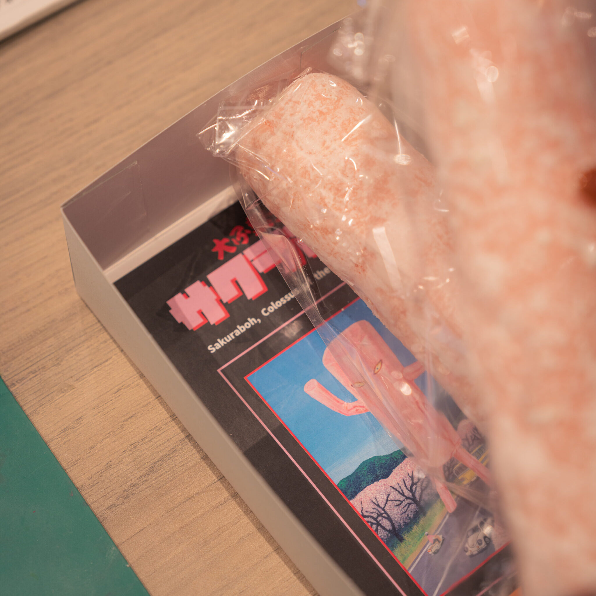 インパクト抜群のパッケージの中には、老舗の大黒屋商事の静岡伝統お菓子「さくら棒」が2本入り。