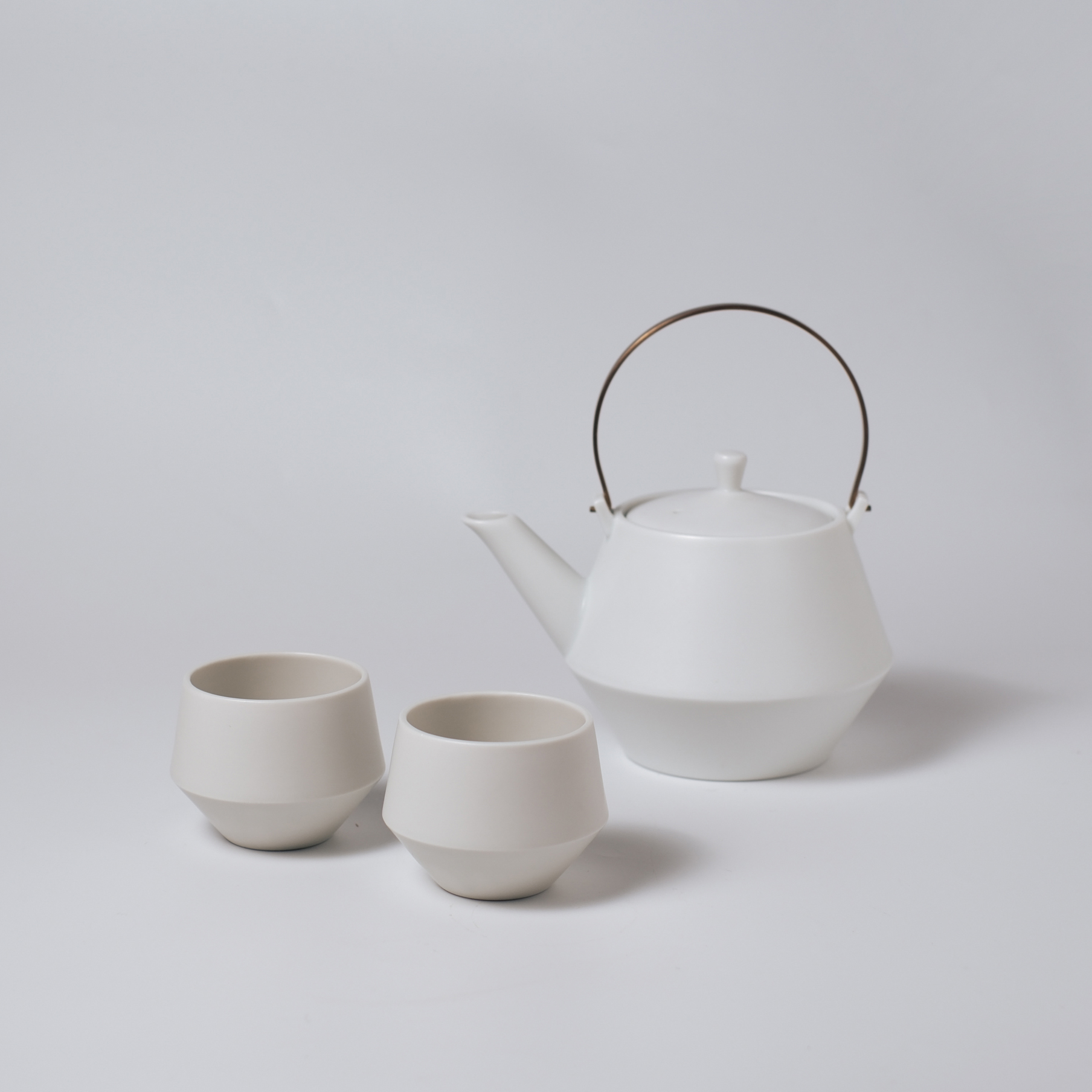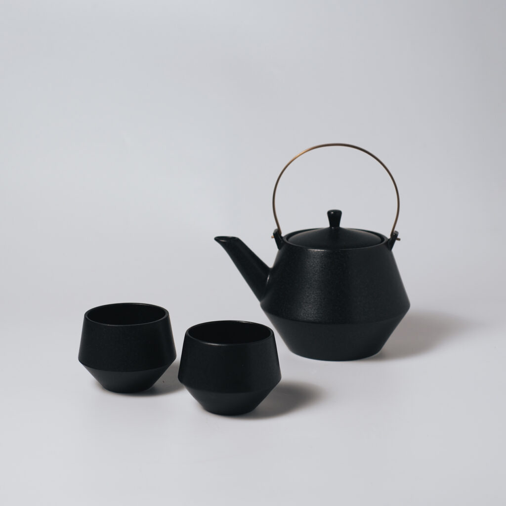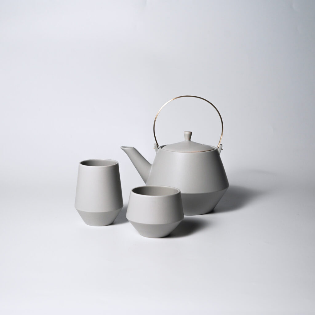 Frustumはお茶の良さを再認識するために、現代の暮らしに合わせデザインをリファインした茶器。 本製品のデザインの肝である土瓶本体の中腹で切り替わるエッジは、日本の東北地方で作られる鉄瓶などで古くから見られる形を引用しています。