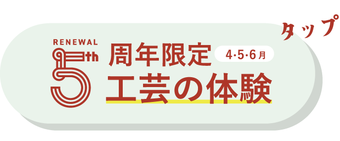 工芸体験では、これまでの“人気ベストセラー体験”に加え、期間限定の特別な体験も登場いたします。カフェやショップにおいても、5年間でご好評いただいてきたメニューや商品を改めてご紹介し、“これまでの魅力”をお楽しみいただけます。館内でも配布中の5周年リーフレッをご確認くださいませ。