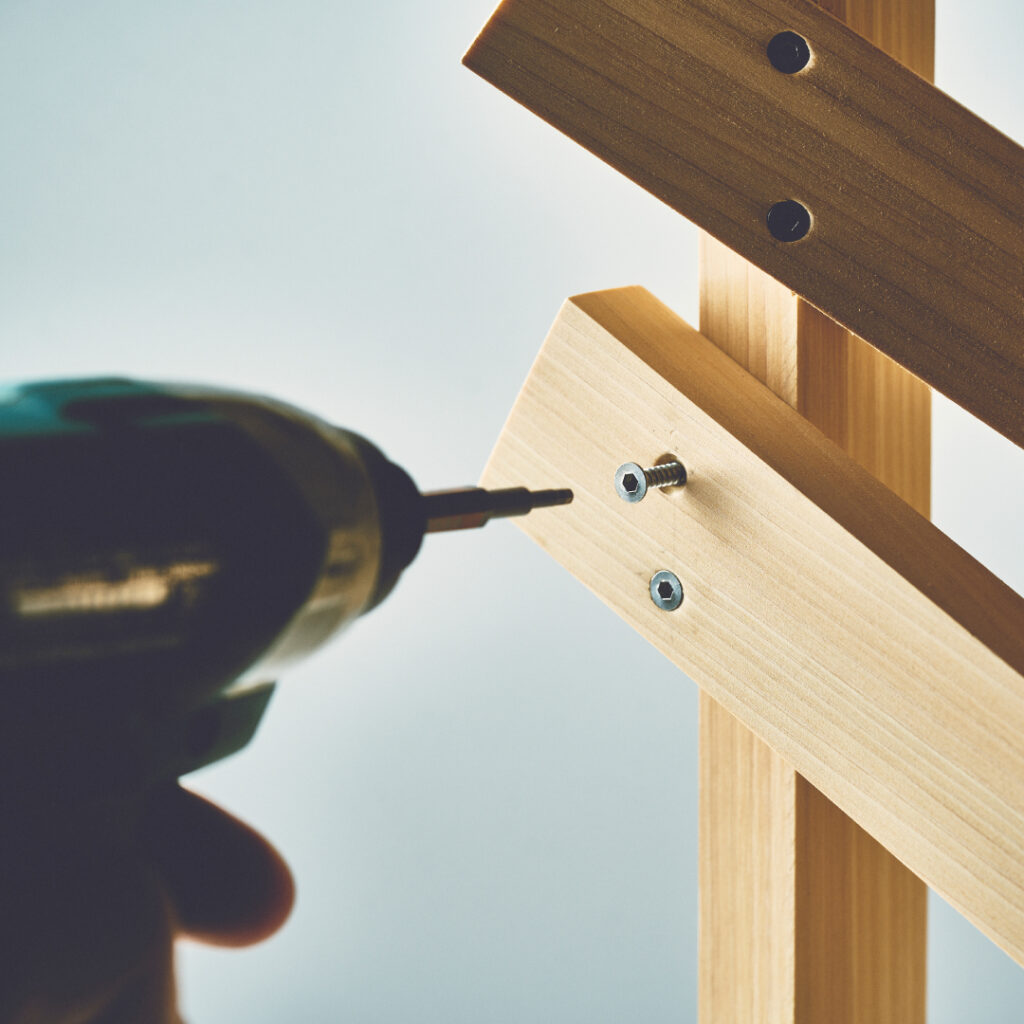 更には静岡市の企業に特注したタテヨコナナメオリジナルの六角穴の木ネジで組んでいく、細部にまでこだわった静岡づくしのスツールです。