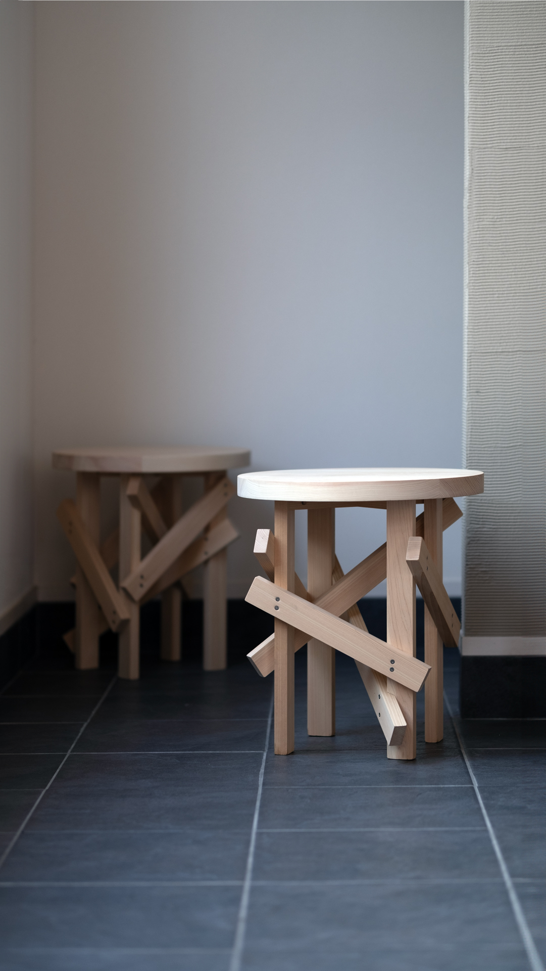 構造を学び、デザインすることで出来上がるこのスツールは、座るだけでなくサイドテーブルとしても活躍し、自分でつくった特別なインテリアとしてあなたの生活に寄り添います。