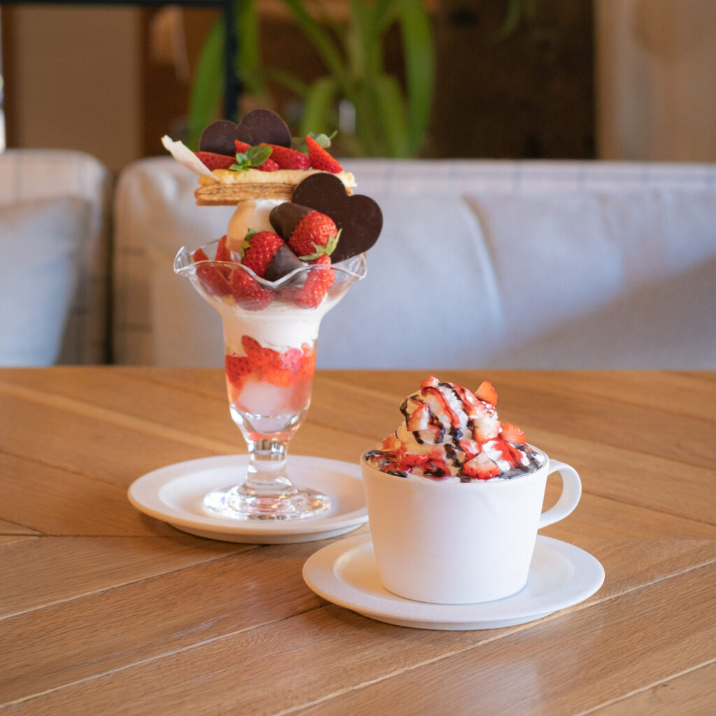 ミルクチョコレートをまとったバレンタイン限定苺パフェと、