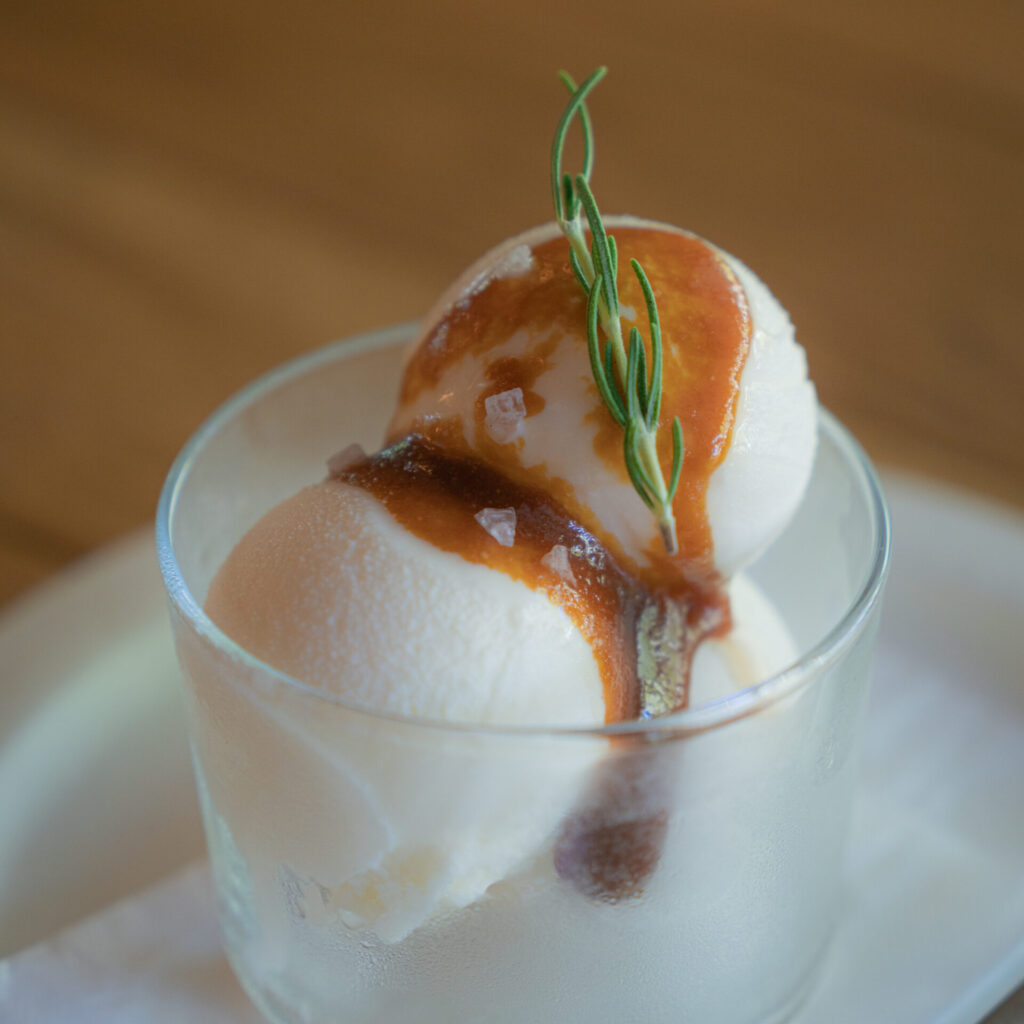 ミルクジェラートに自家製の塩キャラメルソースをかけ、