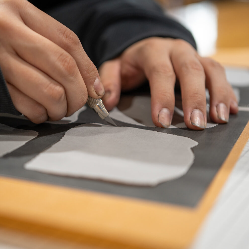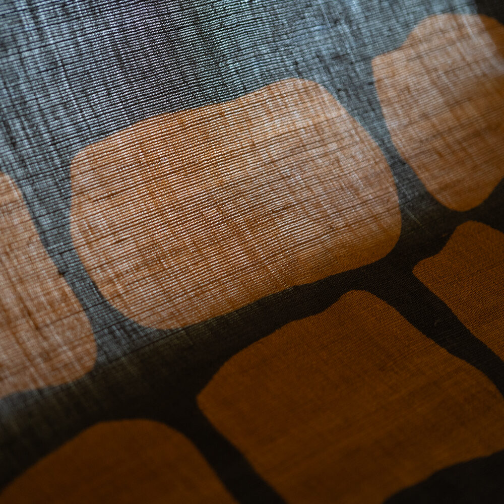 自分で染めた3mの生地にお好きな柄を入れ、暖簾やランナーに仕立て世界に一つだけのお茶染め作品を制作することができます。