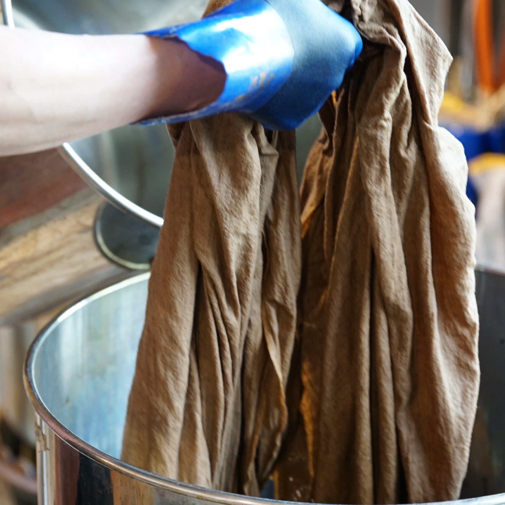 製造工程で廃棄されてしまう茶葉を染料に使用し、伝統工芸の駿河和染めの技術で染めていきます。着用することが少なくなった衣類などをお持ち込みいただき、お茶染めで染める工程を体験いただけます。