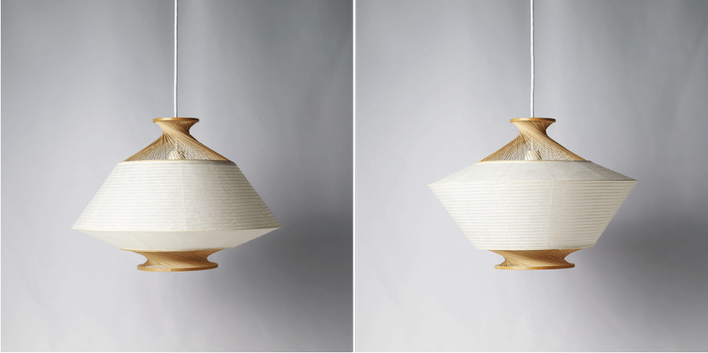 和紙のシェードをはさんだ上下の竹部分を外し、シェードの天地を変えることで2種類の形状をお楽しみいただけます。