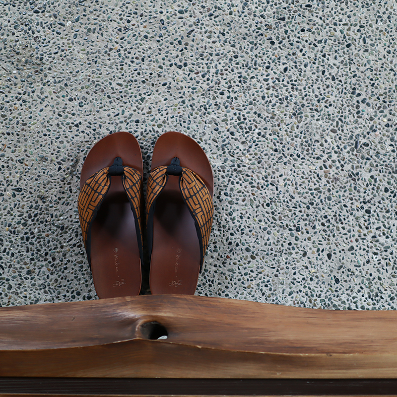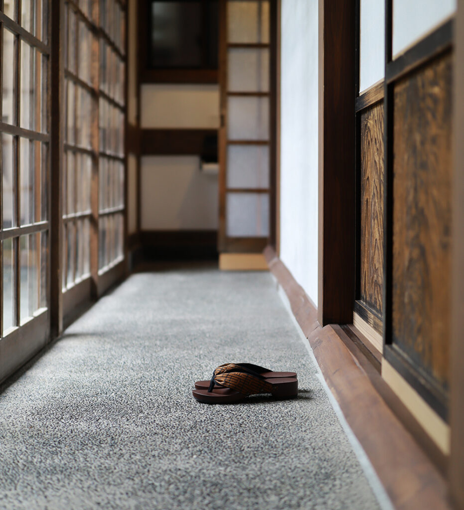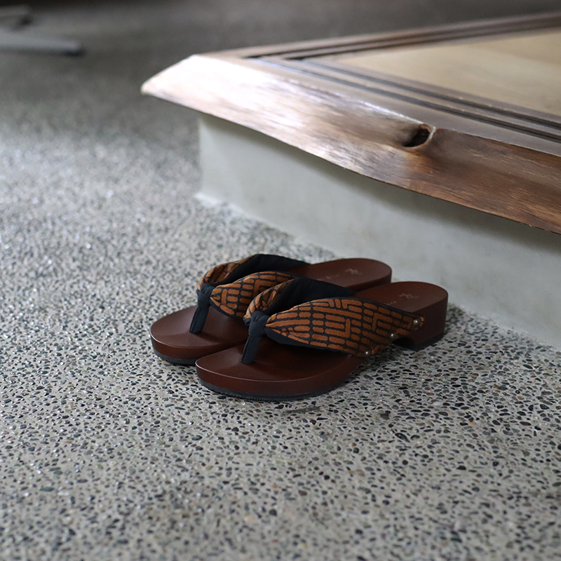 鼻緒をお茶染めWashizu.の茶染めであしらった特別な下駄。