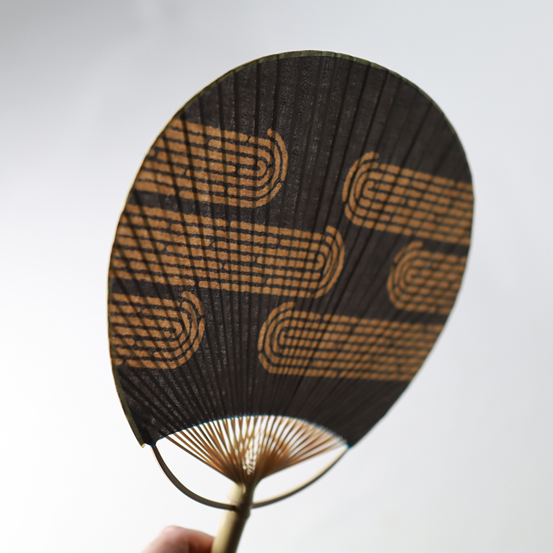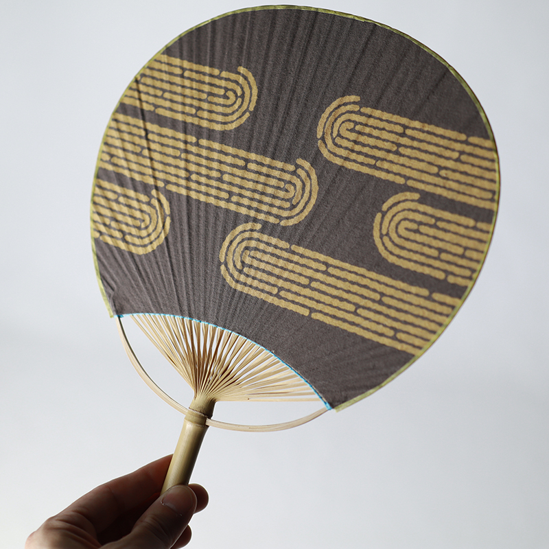 竹の骨組みを一本一本丁寧に組み上げる江戸うちわの技と、茶葉から抽出した自然の色味を活かした染めが融合し、やさしく落ち着いた表情に仕上がりました。