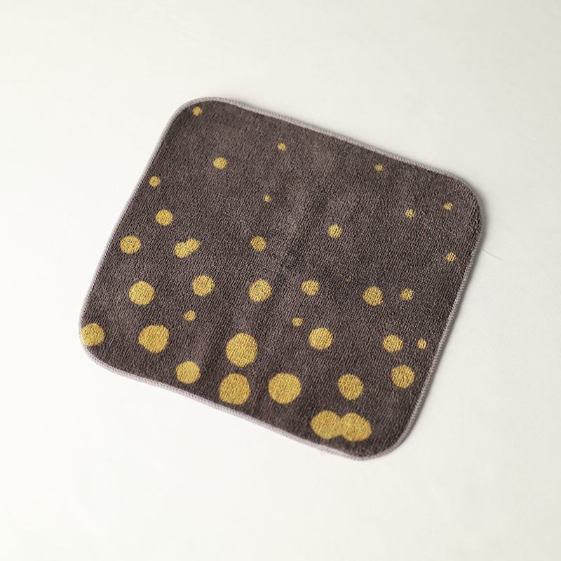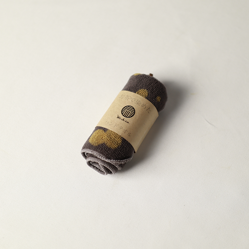 静岡のお茶で、やさしく染め上げたハンドタオル。自然から生まれた、落ち着いた色合いに、お茶の実をモチーフにした柄を散りばめました。やわらかな肌触りで、手を拭くたびにほっとする使い心地。毎日の中で気軽に使え、使うほどに風合いが増していきます。お茶染めならではの色合いは、時間とともにやわらかく褪せ、その変化も味わいのひとつ。日常使いにも、ちょっとした贈りものにも。さりげなく、静岡らしさを楽しめる一枚です。日常使いにも、ちょっとしたお礼や贈りものにもおすすめです。
