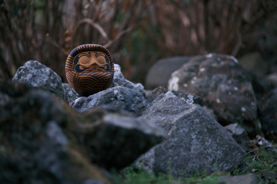 制作し、命を吹き込みました。染め上がった生地は「木目込職人」の手によって完璧なバランスで達磨に着付