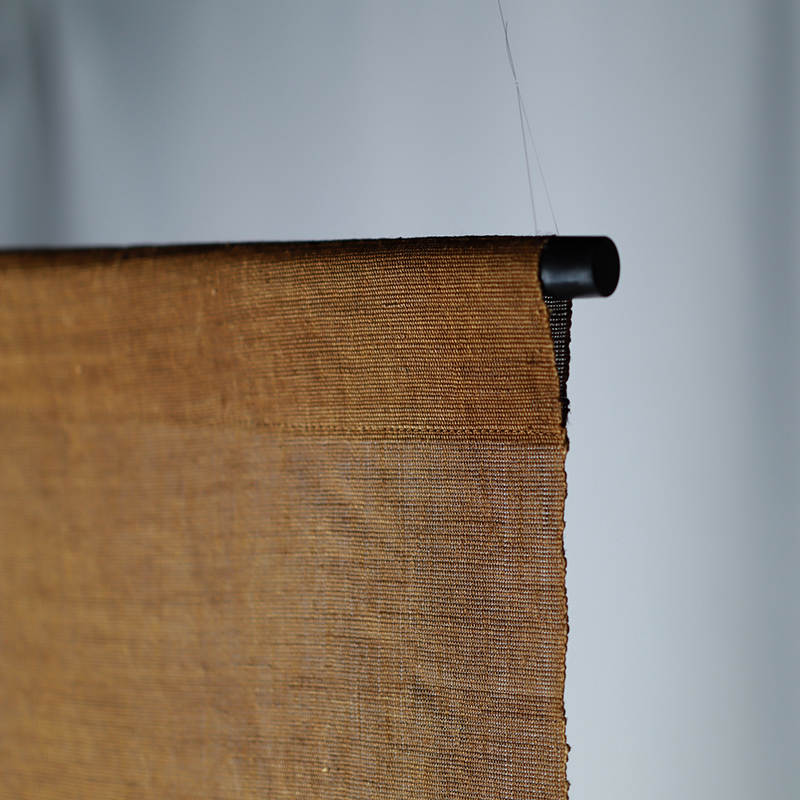 自然素材である麻の軽やかな風合いに、お茶染めならではの深みある色合いを重ねました。やわらかく光を透かし、空間に穏やかな陰影を生み出します。
