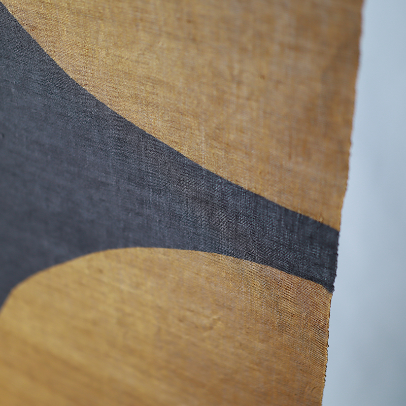 空間に合わせて表情を変える、お茶染めの麻タペストリー。