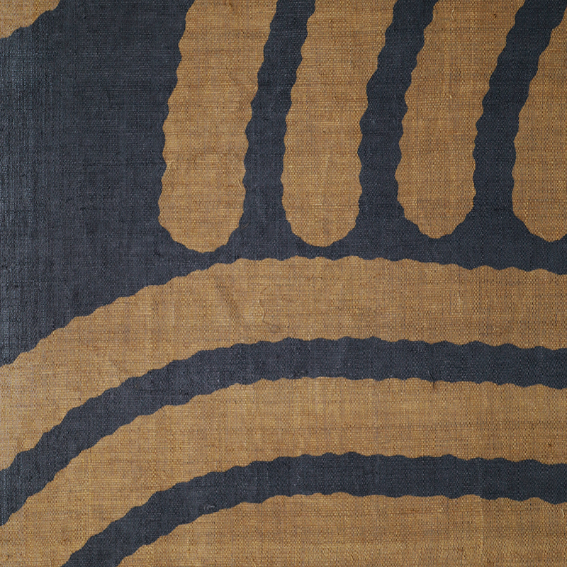 空間に合わせて表情を変える、お茶染めの麻タペストリー。