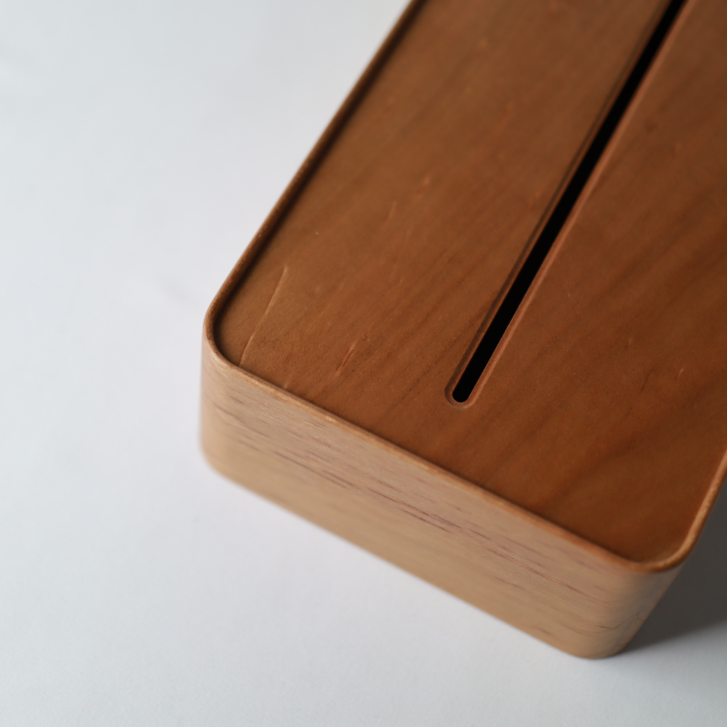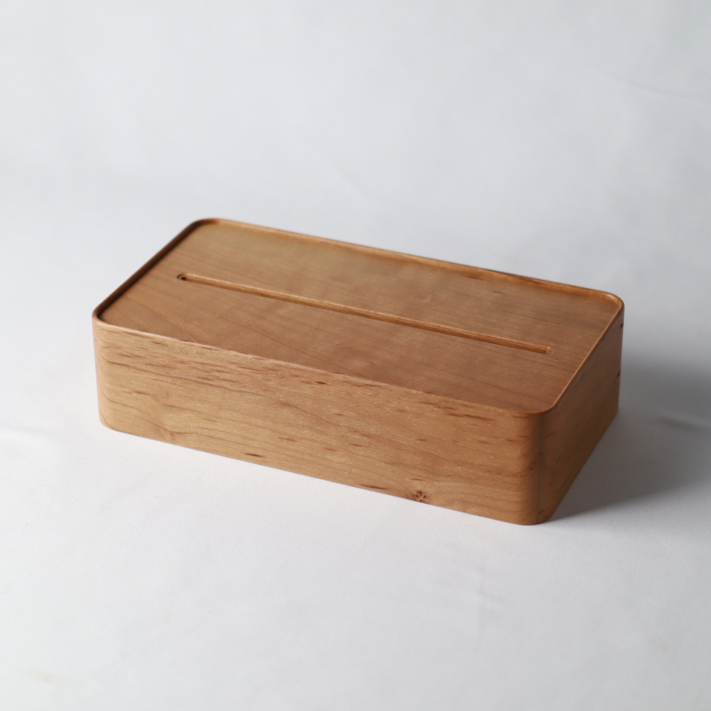 まるで一枚板のようにどこで繋がっているのかわからないほど丁寧に組み上げられており、日常の何気ない瞬間を、少しだけ上質にしてくれるアイテム。けんどん式なのでティッシュの出し入れも簡単です。