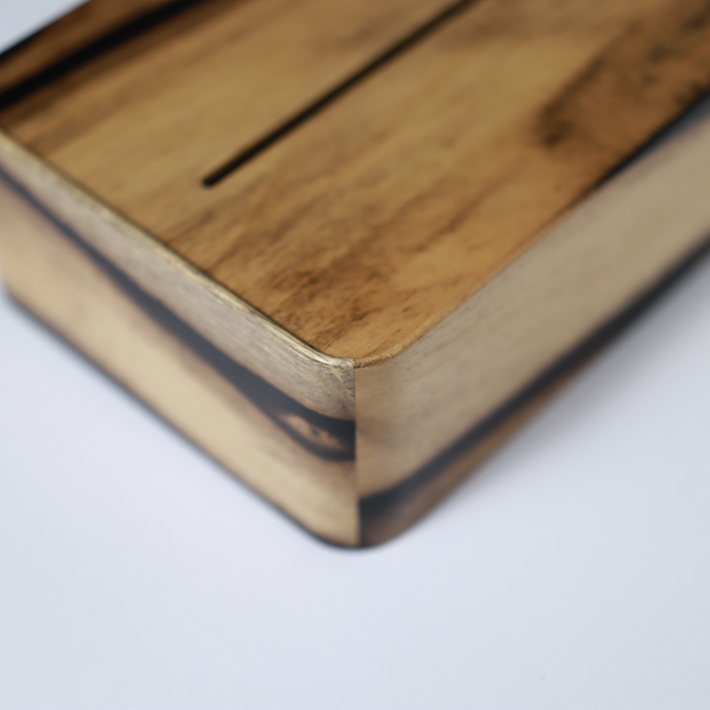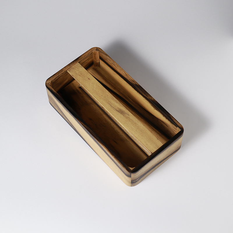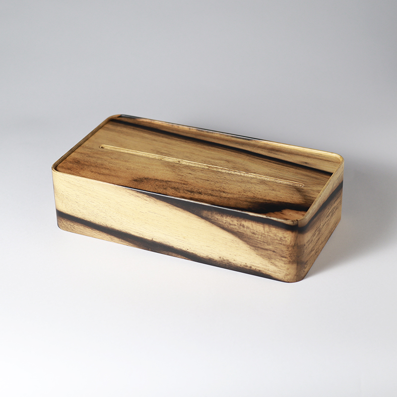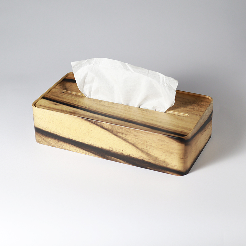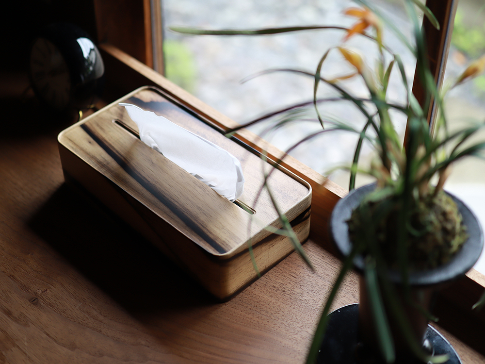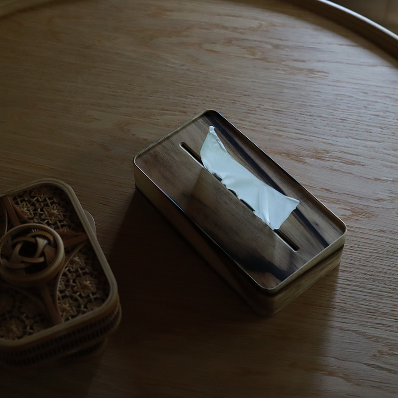まるで一枚板のようにどこで繋がっているのかわからないほど丁寧に組み上げられており、日常の何気ない瞬間を、少しだけ上質にしてくれるアイテム。けんどん式なのでティッシュの出し入れも簡単です。
