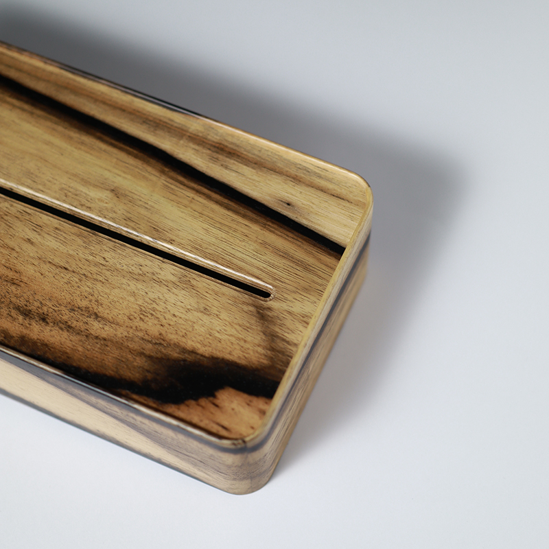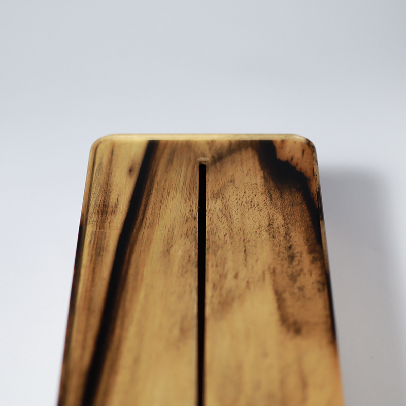 布製やプラスチック製のケースのように痛みずらく、むしろ使い込むほどに味わいが増し、経年変化も楽しめるのが無垢材の魅力。