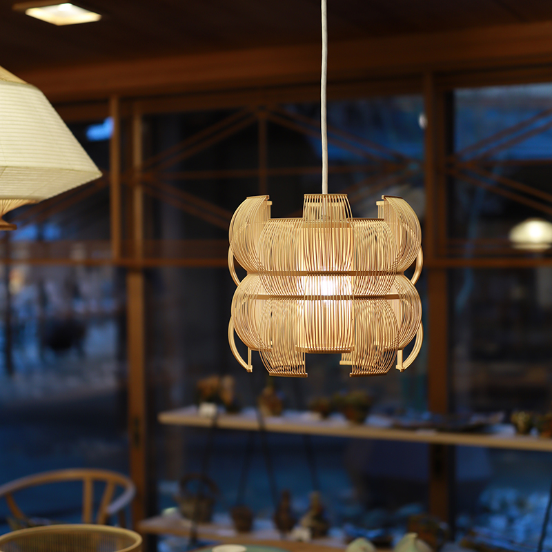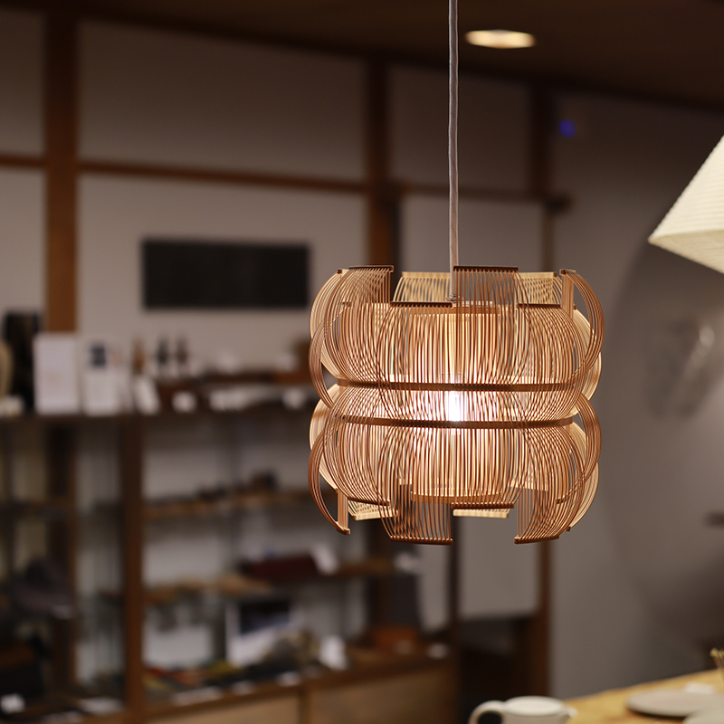 こちらは駿河竹千筋細工の技法を用いた作品「SEN(千)スタンドライト」のペンダントタイプ。床置きのスタンドライトの魅力をそのままに、天井からやわらかく光を落とすペンダントライトとして匠宿オリジナルにて新登場です。