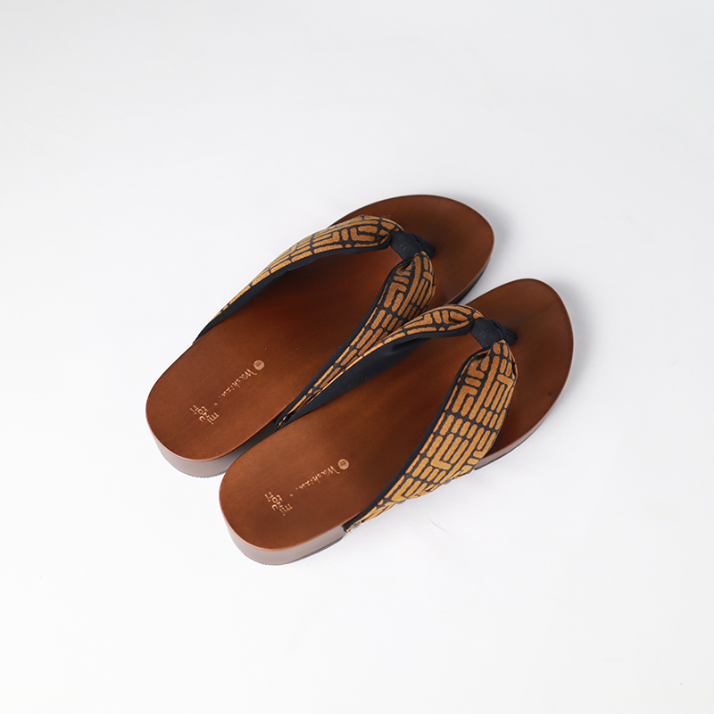 鼻緒をお茶染めWashizu.の茶染めであしらった特別な下駄。