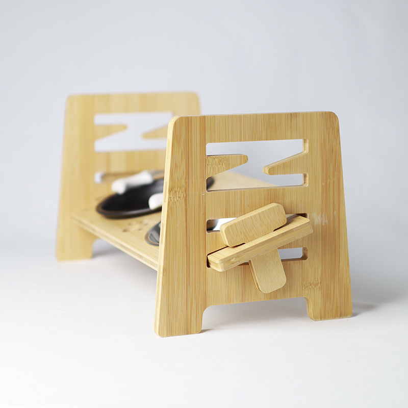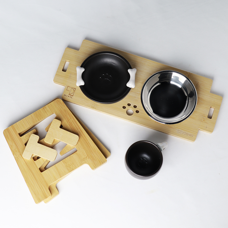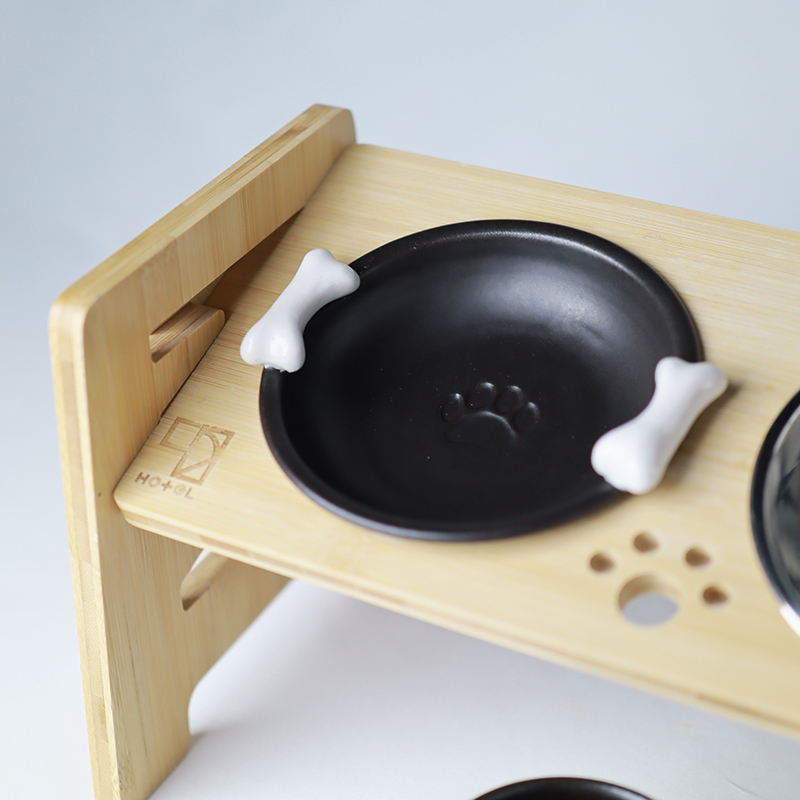 「駿府の工房 匠宿」の陶芸スタッフが製作した1HOTELオリジナルデザインのペットフードスタンドです。