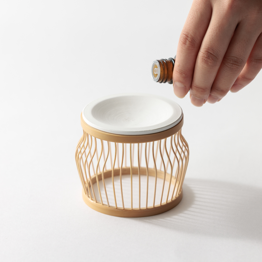 設置する場所により空間の趣を引き立てる一輪挿しタイプと、プレートにエッセンシャルオイルを染み込ませて香りを楽しむアロマディフューザーの二種類をご用意し、様々なシーンでお使いいただけます。