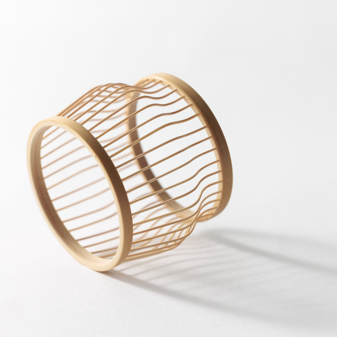 職人がひとつひとつ丁寧に竹を曲げ、その美しさを最大限に引き出しました。竹を内側に曲げる高度な技術である「裏曲げ」を用いて、繊細でしなやかな曲線を生み出しています。