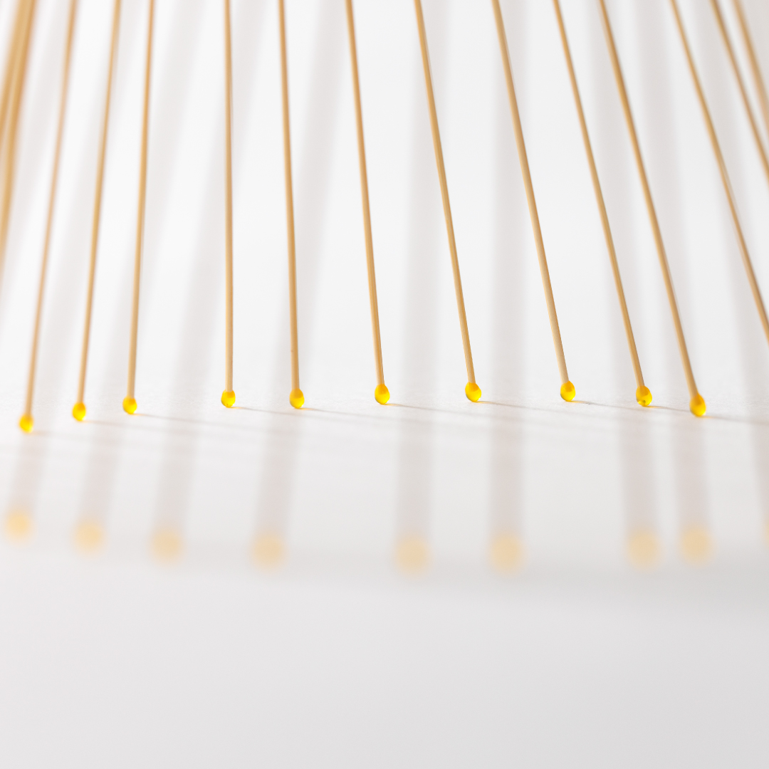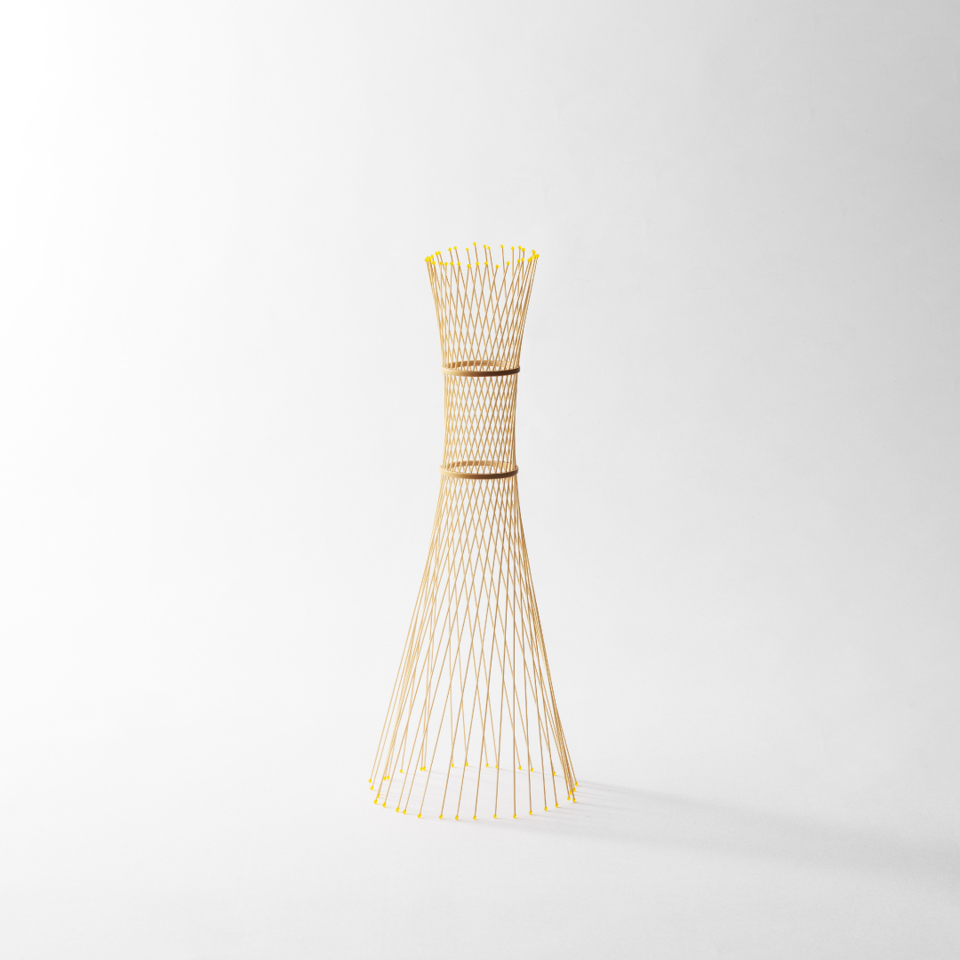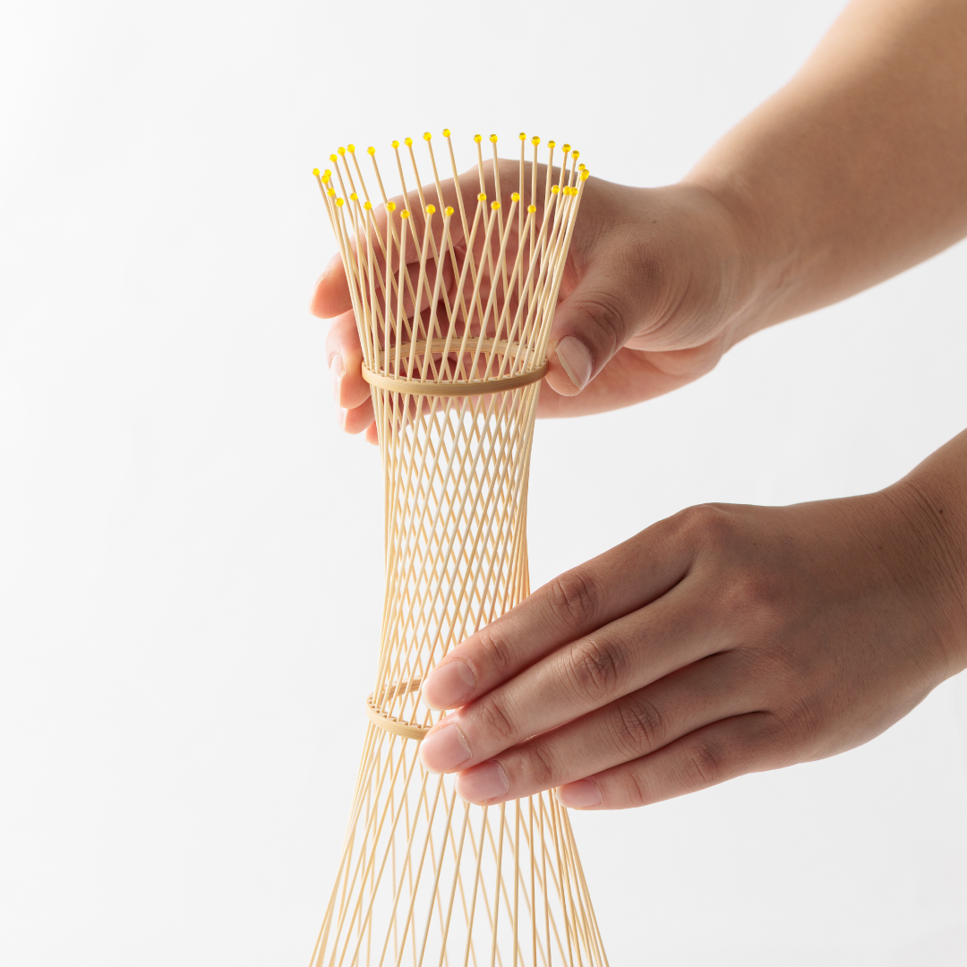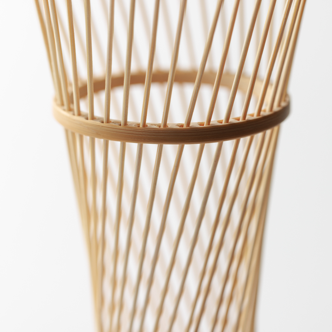 竹の「線」が持つ「しなやかさ」と「かろやかさ」をキーワードに進めていくうちに、線の連なりを動かせたら楽しいと思い、線を動かしていろんな線の連なりを愉しめるものを考えました。